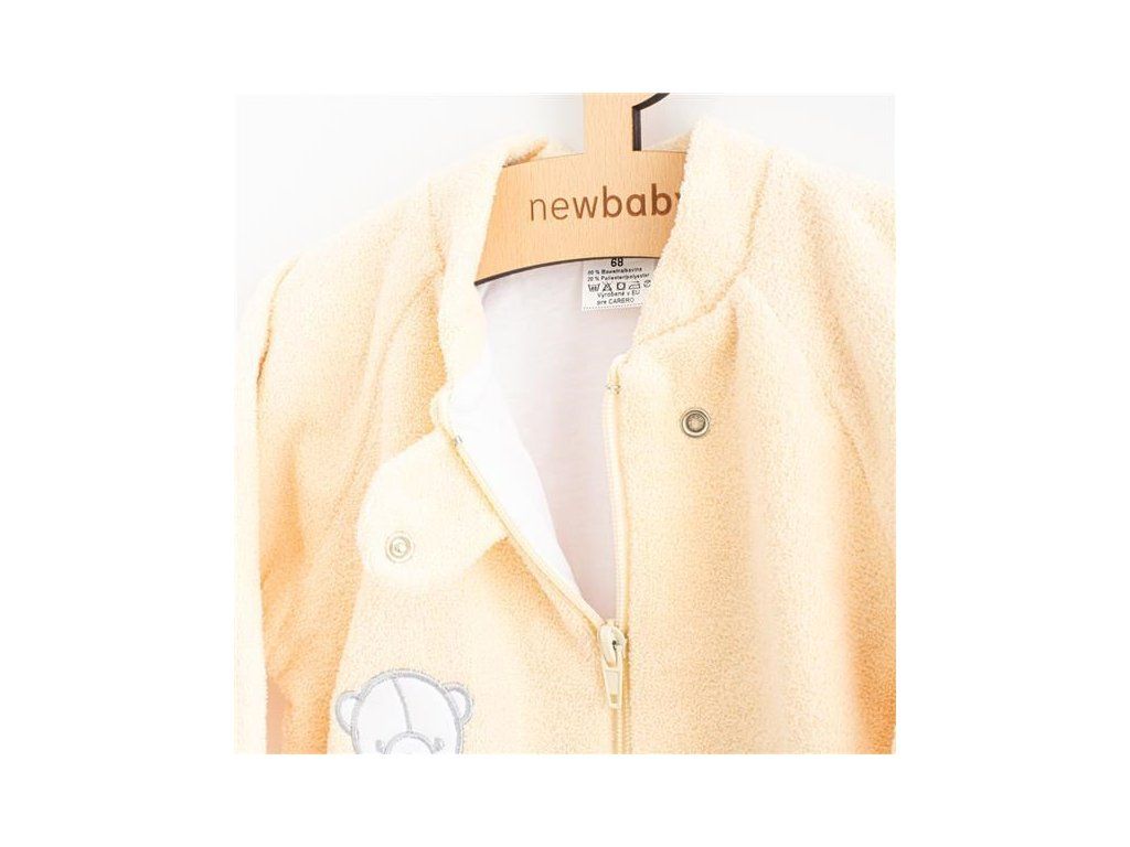 Froté dojčenský spací vak New Baby pre bábätká v krásnej pastelovej farbe s našitým obrázkom medvedíka. Spací vak je vhodný pre bábätká už od narodenia pre svoju jemnosť a mäkkosť. Spací vak je vhodný do postieľky alebo kočíka. Celý spací vak je podšitý bavlnenou podšívkou. Praktické zapínanie na zips po celej dĺžke veľmi uľahčí obliekanie a prebaľovanie. Spací vak je vyrobený z veľmi príjemnučkého, mäkučkého a kvalitného materiálu, ktorý je dôležitý pre spokojnosť bábätka. Zloženie: 80% bavlna, 20% polyester. Podšívka: 100% bavlna.Dodatočné parametre