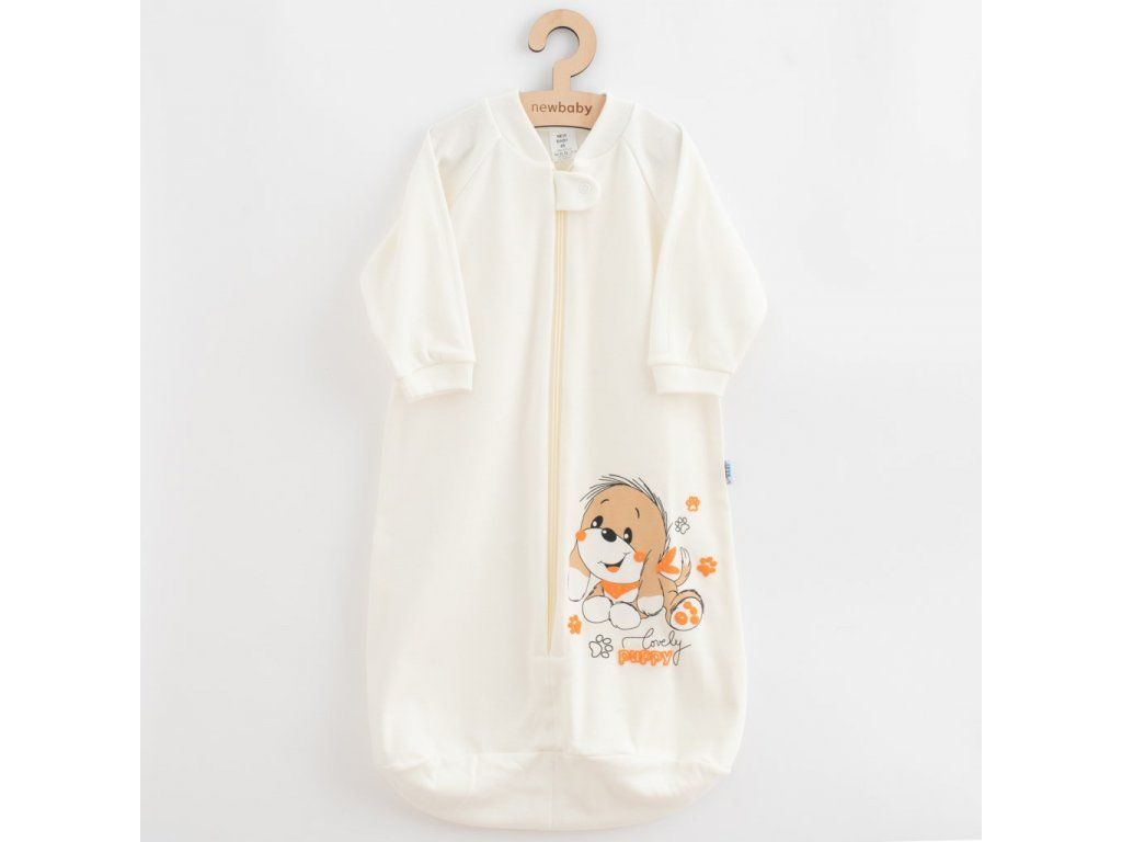Bavlnený dojčenský spací vak New Baby pre bábätká v krásnej pastelovej farbe s veselým obrázkom psíka. Spací vak je vhodný pre bábätká už od narodenia pre svoju jemnosť a mäkkosť. Praktické zapínanie na zips po celej dĺžke. Zloženie: 100% bavlna.Dodatočné parametre