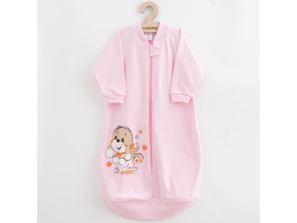 Bavlnený dojčenský spací vak New Baby pre bábätká v krásnej pastelovej farbe s veselým obrázkom psíka. Spací vak je vhodný pre bábätká už od narodenia pre svoju jemnosť a mäkkosť. Praktické zapínanie na zips po celej dĺžke. Zloženie: 100% bavlna.Dodatočné parametre