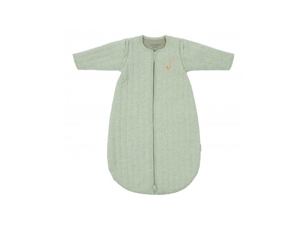 Praktický spací vak s oddeliteľnými rukávmi ponúka variabilitu pri použití podľa počasia a teploty v miestnosti. Vďaka jemnej výplni je vhodný na použitie namiesto perinky. Spací vak zaistí, že sa dieťa v noci neodkope a bude tak po celú dobu spánku v pohodlí a teple bez rizika prechladnutia. Kryté zipsy v prieramkoch umožňujú ľahké oddelenie rukávov, pokiaľ chcete spací vak používať v teplejšom prostredí bez rukávov. Zips na prednej strane umožňuje ľahké vloženie dieťaťa do spacieho vaku a prebaľovanie počas spania.