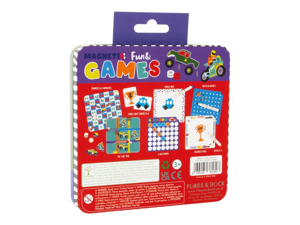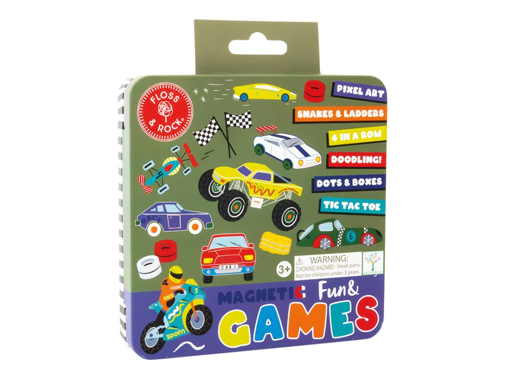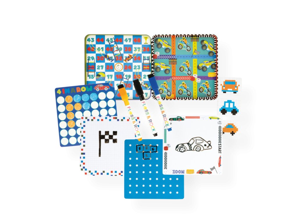 Magnetická zábava a hry v plechovke – AutáÚIplne nová magnetická plechovka plná zábavy od Floss&Rock je teraz ešte lepšia a ideálna na cesty! Objavte až 6 rôznych aktivít a hier – „Hady a rebríky“, „Piškvorky“, „Pixel Art“, „4 v rade“, „Bodky a čiary“ a stránku na kreslenie!