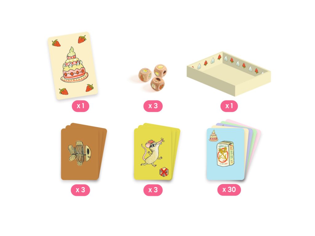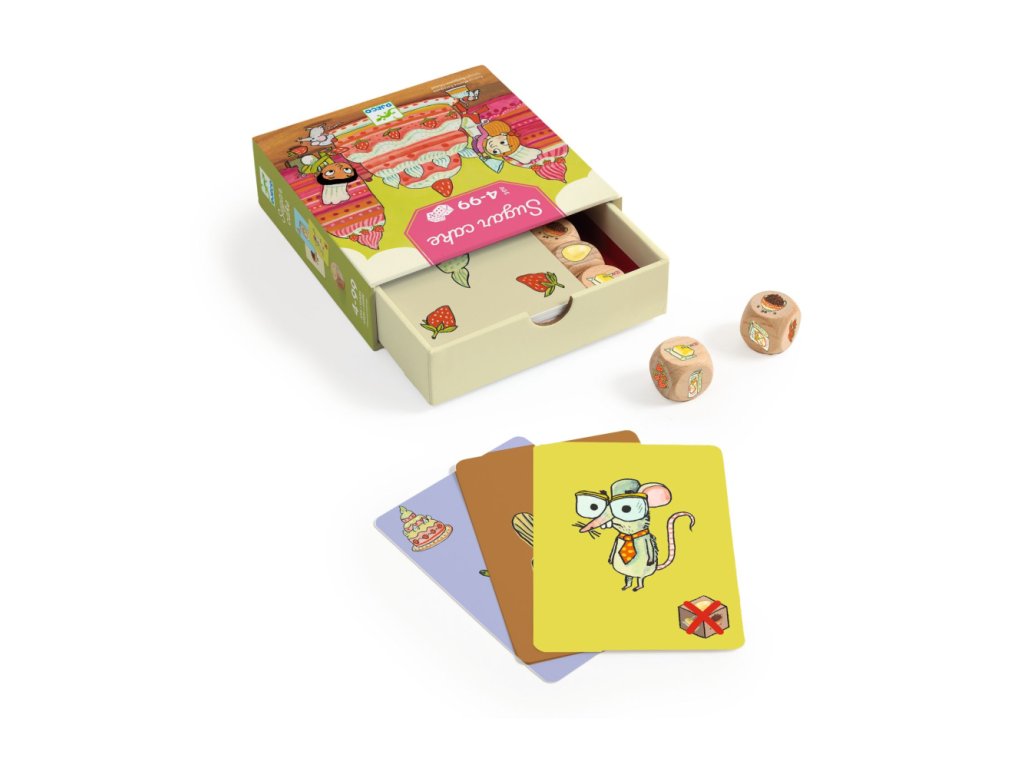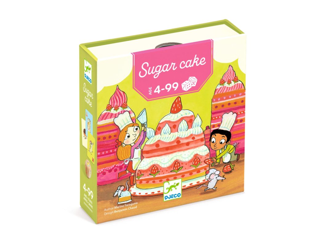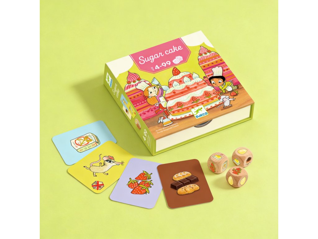 Kartová/kocková hra Cukrový koláčRýchla rodinná hra o pečení, riskovaní a štipke šťastiaCukrový koláč (Sugarcake) je svižná kocková hra, v ktorej sa hráči snažia nazbierať čo najviac ingrediencií na dokonalý koláč. V každom kole hádžete kockami a rozhodujete sa: zabezpečiť si získané karty, alebo riskovať ďalší hod a získať viac? Pozor však na prekvapenia, ktoré môžu všetko zmeniť. Hra je jednoduchá na vysvetlenie, rýchla na odohranie a ideálna pre deti aj dospelých.Prečo si vybrať túto hru od Djecovhodná pre deti od 4 rokovrýchla hra s krátkymi kolamijednoduché pravidlá, ktoré pochopia aj menšie detinapínavý princíp „ešte raz alebo stop“, ktorý baví aj dospelýchtematika pečenia a ingrediencií je deťom blízka a hravákompaktné balenie vhodné aj na cestyvhodné pre 2 až 4 hráčovČo hra rozvíja u detírozhodovanie a strategické uvažovanie (kedy riskovať a kedy prestať)počítanie, porovnávanie a rýchle vyhodnocovanie situáciepozornosť a sústredenietrpezlivosť a zvládanie výhry aj „smoly“sociálne zručnosti pri spoločnej hreObsah balenia3 kocky37 kariet (ingrediencie + špeciálne karty)zásobník (boxový prvok)pravidlá hryTu nájdete návodDodatočné parametre