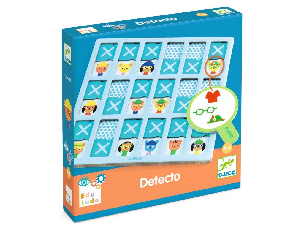 Hra Eduludo Detecto Edukačná hra na postreh a logické vylučovanieHra Eduludo Detecto od značky Djeco je premyslená edukačná hra pre deti, ktorá spája pozorovanie, porovnávanie a jednoduchú dedukciu. Dieťa hľadá správnu postavičku spomedzi viacerých veselých zvieratiek s klobúkmi, okuliarmi a tričkami. Postupne vylučuje tie, ktoré sa nezhodujú, a pomocou kontrolného prvku si môže svoje riešenie overiť. Hravou formou si tak rozvíja schopnosť sústrediť sa na detaily, vizuálne rozlišovať a premýšľať krok za krokom. Hra je určená pre deti od 4 rokov.Djeco hra je vhodná na samostatné hranie aj na spoločné objavovanie s rodičom. Herný princíp je zrozumiteľný, vďaka čomu sa deti rýchlo zorientujú v úlohe a môžu sa sústrediť na samotné riešenie. Veľkou výhodou je aj samokontrolný princíp, ktorý podporuje samostatnosť a prináša dieťaťu istotu pri hľadaní správnej odpovede. V balení sa nachádza drevená herná doska, 18 hľadacích a riešeniových „lúp“ a brožúrka.Prečo je Eduludo Detecto výborná voľba Rozvíja postreh a koncentráciu pri hľadaní správnej postavičky Podporuje logické myslenie cez vylučovanie nesprávnych možností Pomáha trénovať vizuálne rozlišovanie detailov, farieb a prvkov Samokontrolný systém motivuje dieťa k samostatnému riešeniu Milé ilustrácie zvieratiek robia hru pre deti atraktívnouHra, ktorá deti učí premýšľaťEduludo Detecto patrí do obľúbenej série vzdelávacích hier Djeco, ktoré menia učenie na zábavnú aktivitu. Dieťa pri hre nielen pozoruje, ale zároveň sa učí vyhodnocovať, čo sa zhoduje a čo nie. To z nej robí pekný tip na darček pre deti, ktoré majú rady logické hry, úlohy na postreh a hravé aktivity s jasným cieľom. Praktický formát balenia s rozmermi približne 22 × 22 × 4 cm je vhodný aj na domáce hranie či darovanie.Odporúčaný vek: od 4 rokov.Tu nájdete návod