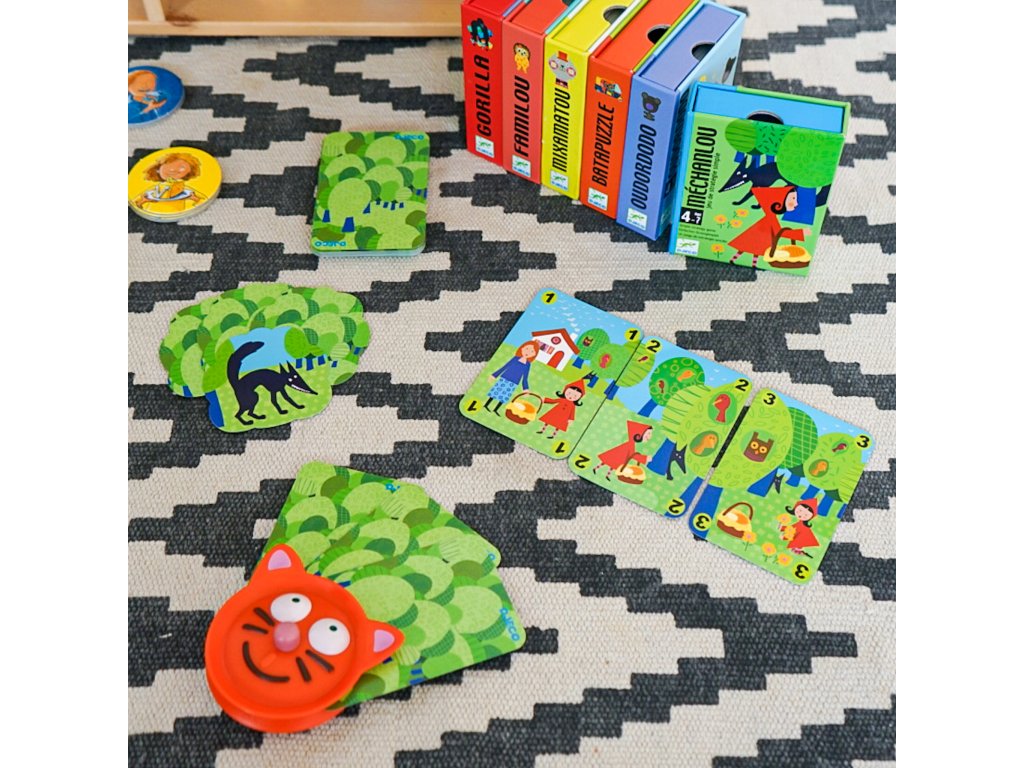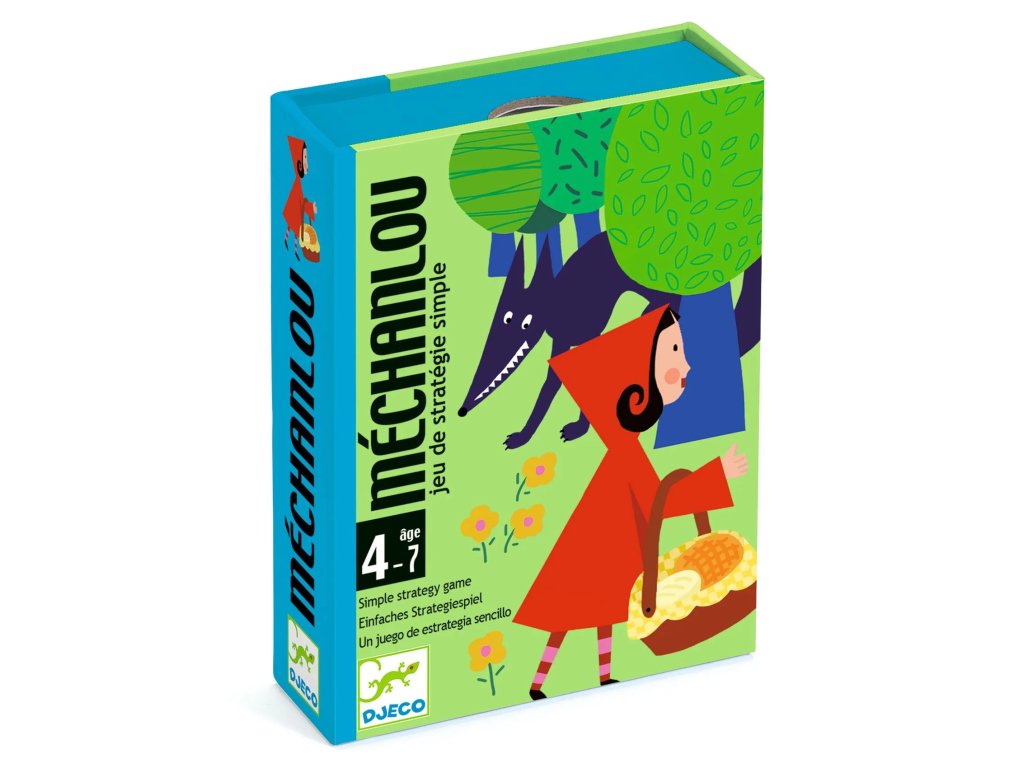Kartová hra Červená Čiapočka Strategická kartová hra pre detiKartová hra Červená Čiapočka (Méchanlou) je napínavá a pritom jednoduchá strategická hra, ktorá učí deti premýšľať, plánovať a rozhodovať sa. Hráči sa snažia poskladať celú rozprávku zo 6 kariet – od odchodu Čiapočky z domu až po stretnutie s poľovníkom. No pozor! Rovnaké plány má aj vlk, ktorý číha na každom rohu a môže vám karty ukradnúť. Deti sa tak učia stratégie hravou formou, zatiaľ čo si pripomínajú jednu z najznámejších rozprávok.Prečo si ju deti obľúbia?známa rozprávková téma (Červená Čiapočka)