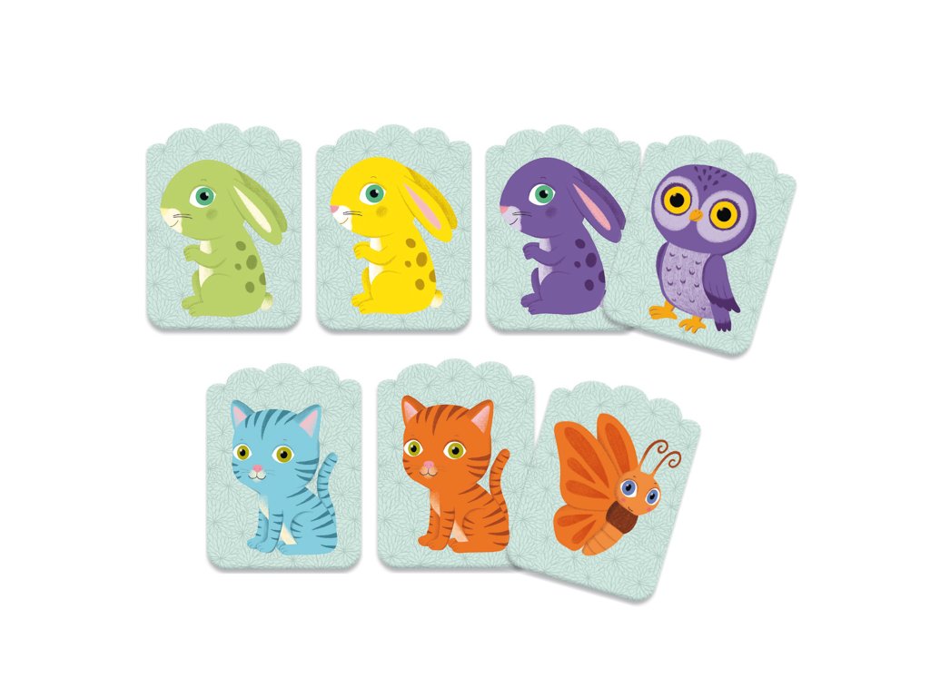 Kartová hra Malé dvojiceZábavná a jednoduchá hra pre najmenších hráčovMalé dvojice je kartová hra zo série „little“, ktorá je prispôsobená deťom, ktoré sa len začínajú zoznamovať s kartovými hrami. Veľké, pútavo ilustrované a odolné karty s jednoduchými pravidlami a krátkym herným časom umožňujú deťom rýchlo pochopiť princíp hry a zabaviť sa.Ako sa hrá?Hráči zoradia karty podľa zhody – zvieratká sú buď rovnakej farby alebo rovnakého druhu. Hra je intuitívna a rozvíja pozorovacie schopnosti, pamäť a logické myslenie detí už od 2 rokov.Prečo si deti hru zamilujú?jednoduché a intuitívne pravidlá