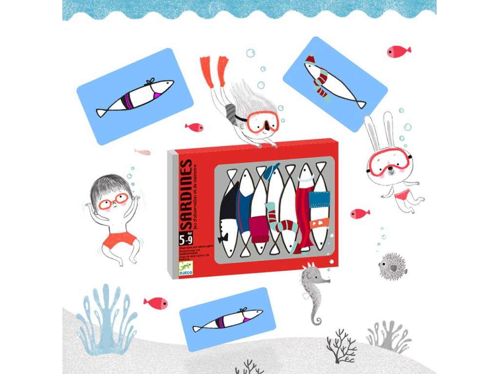 Kartová hra SardinkyRýchla a zábavná hra na pamäť a pozornosť pre deti aj dospelýchSardinky je veselá kartová pamäťová a pozorovacia hra, ktorá preverí pozornosť. Cieľom je získať čo najviac sardiniek. Hra je jednoduchá na pochopenie, krátka a dynamická, preto je ideálna pre deti aj celé rodiny pri spoločnom hraní.Prečo si vybrať túto hru od Djecovhodná pre deti od 5 rokovpre 2 – 4 hráčovjednoduché pravidlá, vhodné aj pre najmenších hráčovpodporuje pamäť a pozornosť hravou formoufarebné a pútavé ilustrácieČo hra rozvíja u detíkrátkodobú pamäť a pozornosťschopnosť vnímať detailyrýchle rozhodovanietrpezlivosť a sústredeniesociálne zručnosti pri spoločnej hreObsah baleniasada 50 kariet s ilustrovanými obrázkamipravidlá hryTu nájdete návodDodatočné parametre
