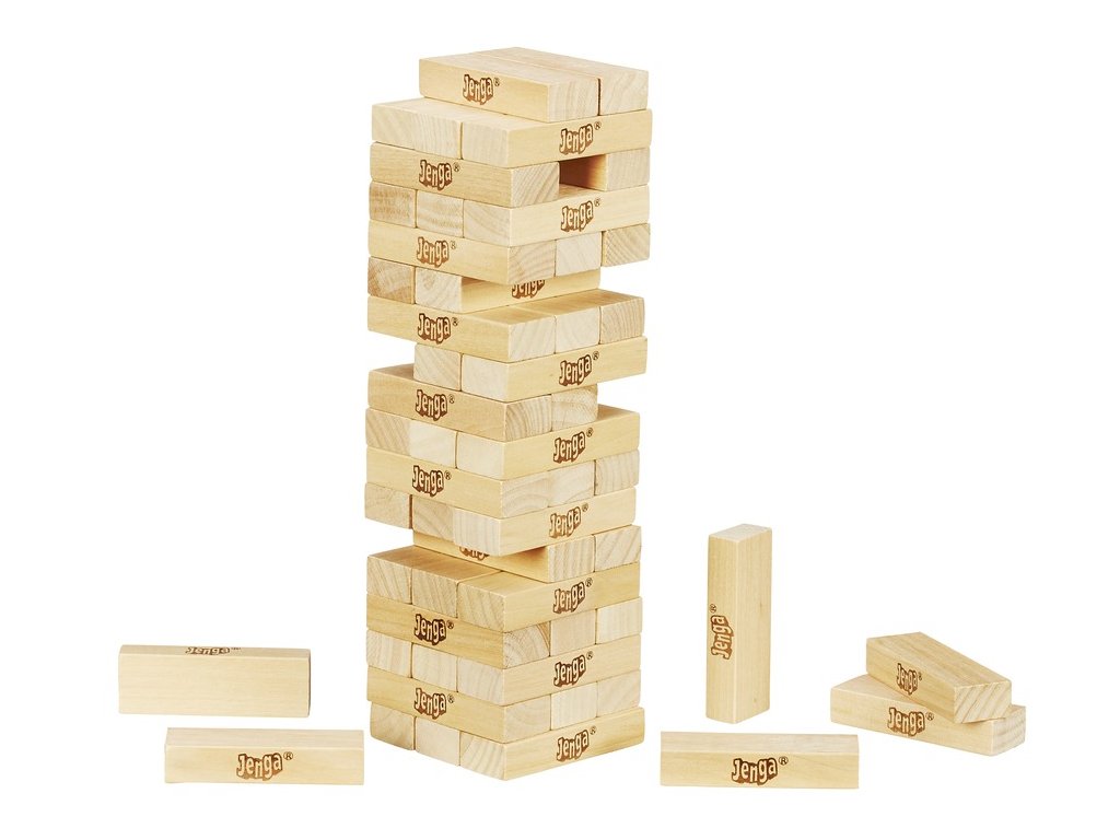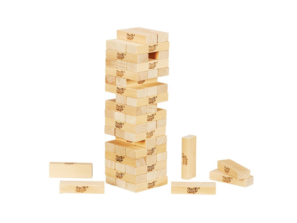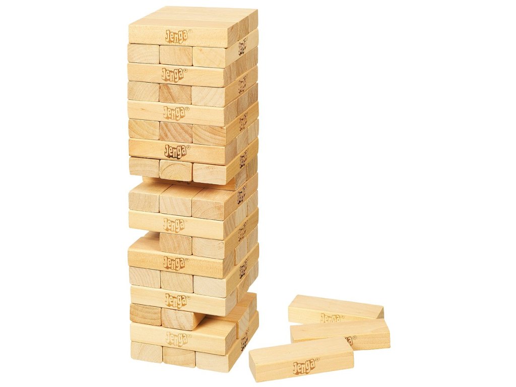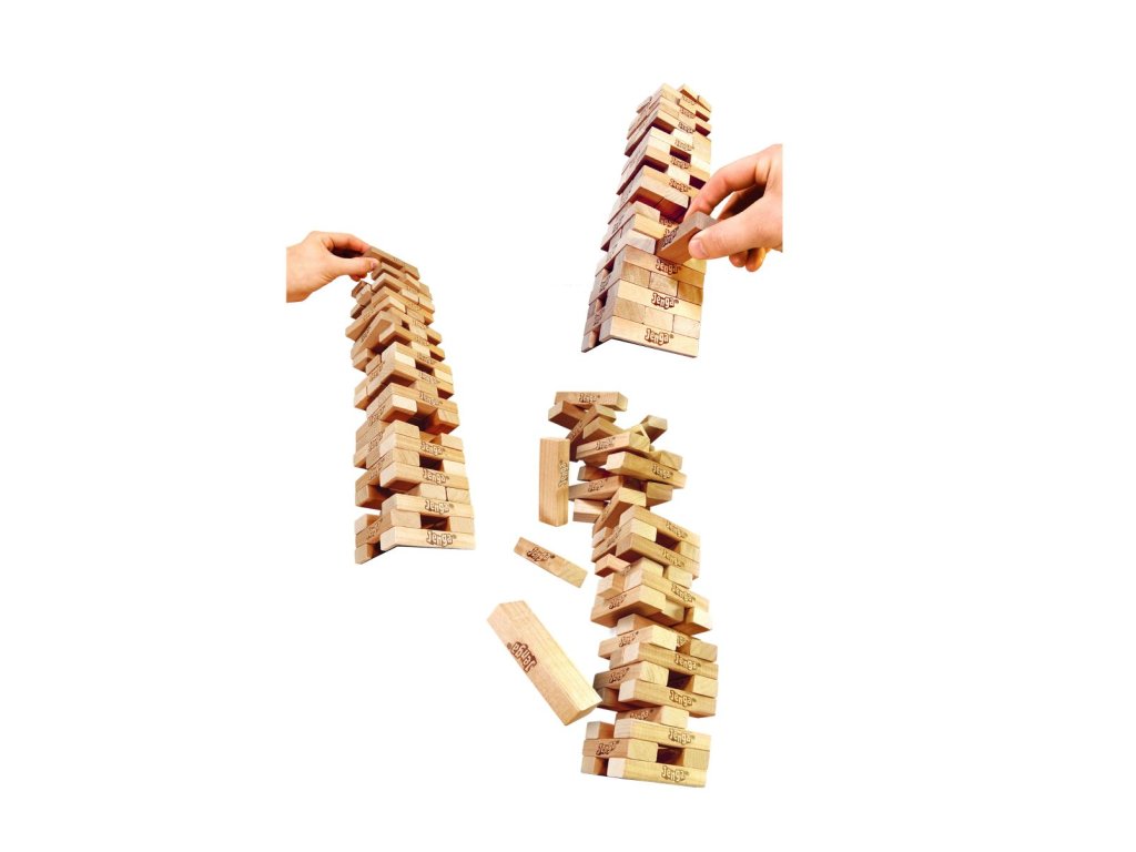 Postav zo všetkých kvádrov Jenga vežu. Potom jednou rukou postupne vyťahuj kvádre a umiestňuj ich hore, aby si vežu ešte zvýšil. Je tvoja ruka dostatočne pevná, aby si celú vežu nezhodil? Obsahuje 54 kvádrov Jenga z tvrdého dreva a pomôcku na stavanie.Dodatočné parametre