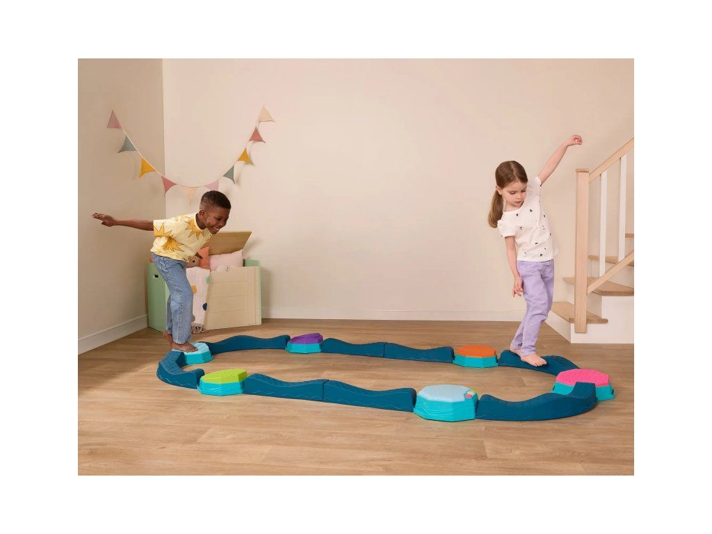 Variabilná prekážková dráha Balance & Groove poskytne vašim deťom zábavu a zároveň pomáha rozvíjať ich rovnováhu, koordináciu a hrubú motoriku. Súčasťou sady je špeciálny hudobný stupienok s LED svetelnými efektmi, ktorý dodáva celej dráhe magický efekt a motivuje deti skúšať ďalšie a ďalšie herné varianty. Sada ponúka mnoho kombinácií a spôsobov použitia, takže zakaždým môžete vymyslieť nový, zaujímavý variant. Každý okrúhly stupienok navyše ponúka inú textúru na hornej farebnej strane.