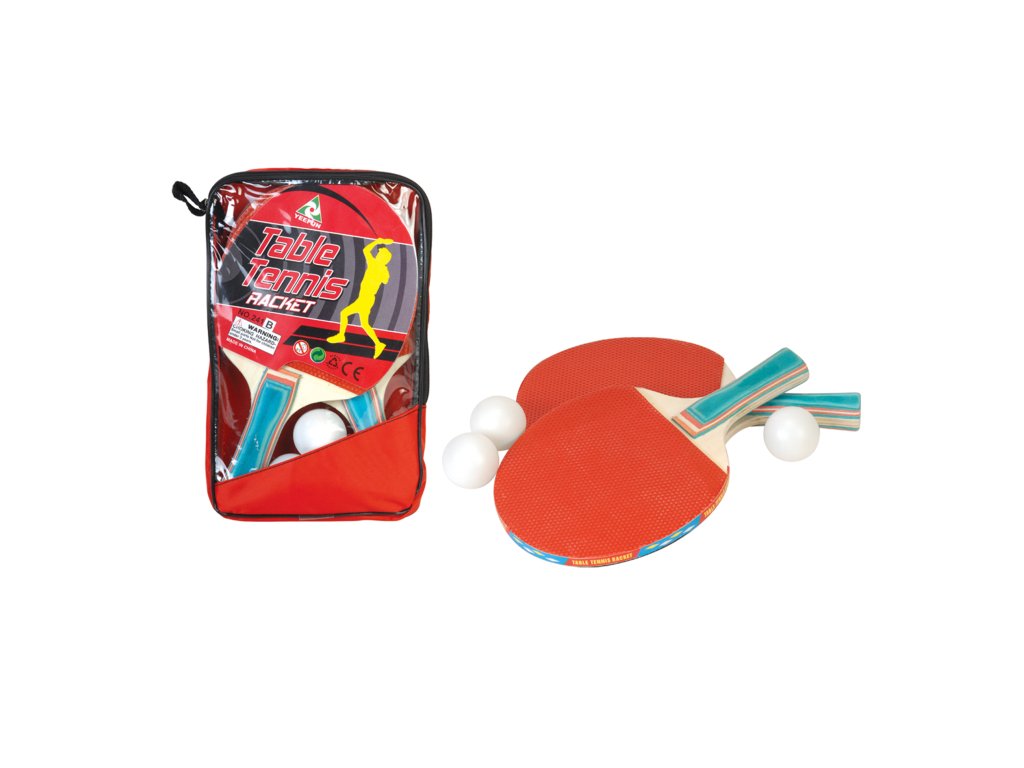 Sada dvoch rakiet a 3 loptičiek na stolný tenis. Uložené v praktickom obale.Dodatočné parametre