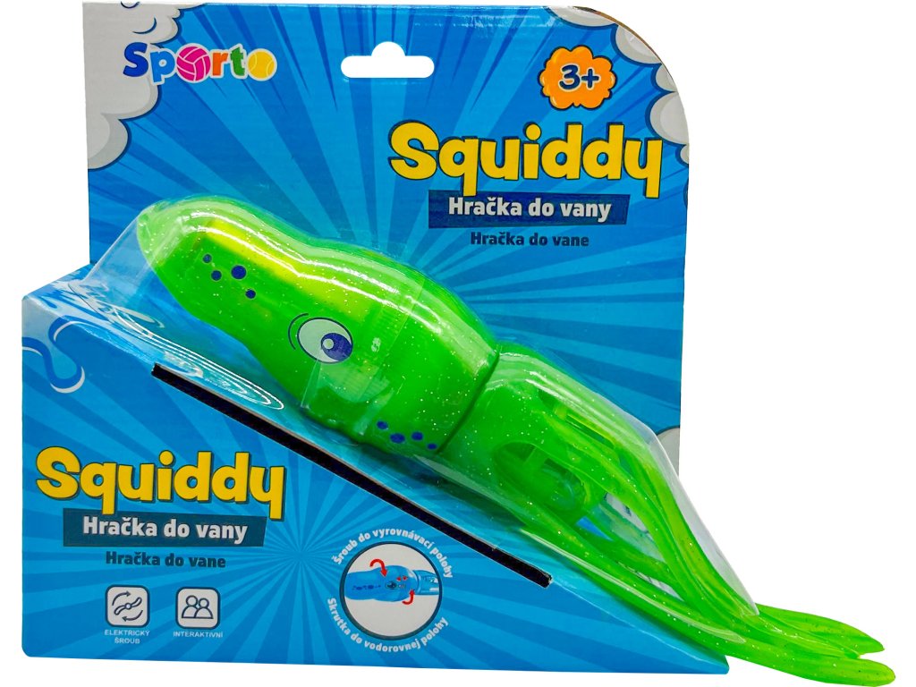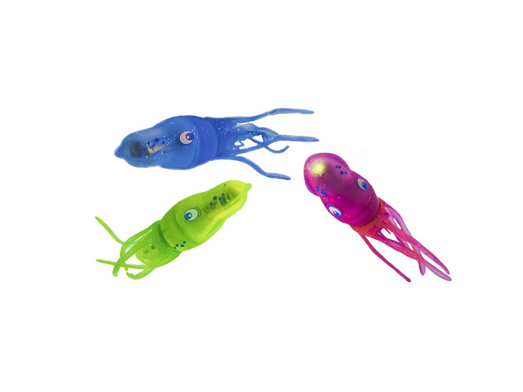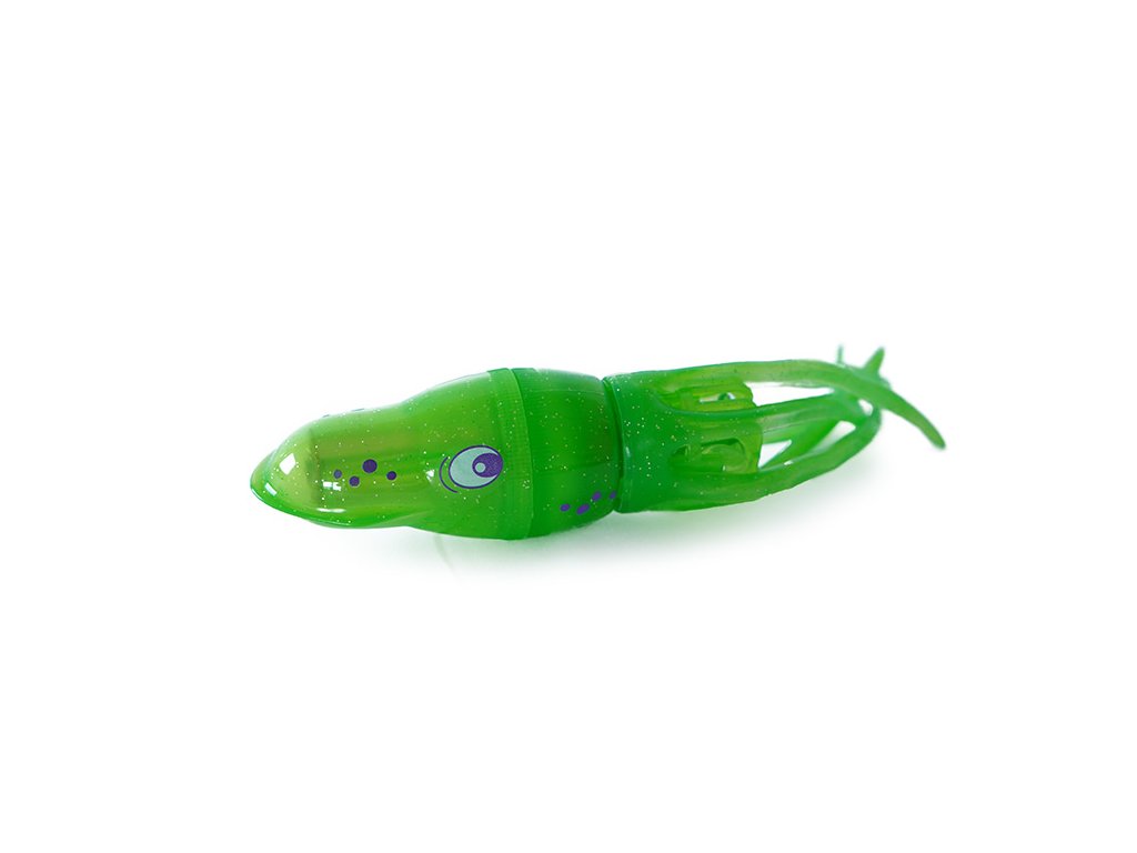 Kalmár Squiddy je veľmi rýchly a snaží sa ti odplávať. Pri náraze do vane alebo bazéna zmení smer a pláva ďalej. Pri plávaní svieti a otáča sa. Doženieš ho alebo ti odpláva? Squiddy je zábavná hračka na leto, ale aj na zimu. Môže plávať v bazéne alebo vo vani.Dodatočné parametre