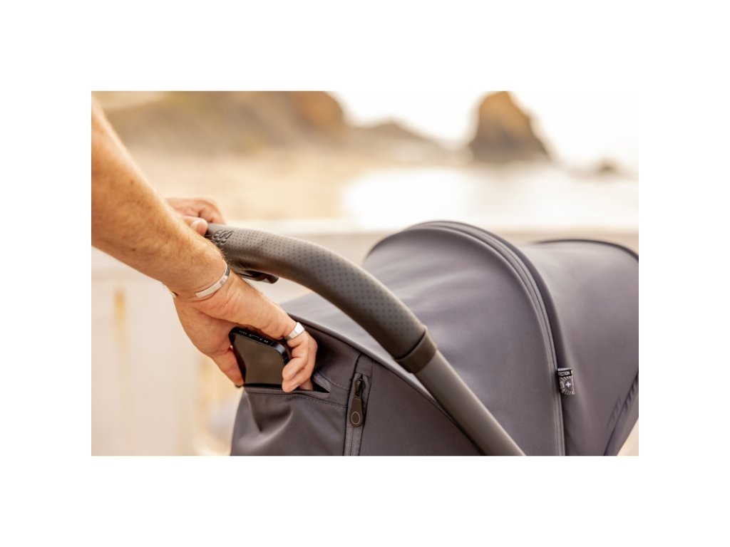 Typické prvky egg® nájdete na každom detaile – od elegantných kriviek a dezénu kolies až po ručne šitú koženkovú rukoväť (s výškou 105 cm) a odnímateľné madlo pred dieťaťom. Každý detail bol starostlivo premyslený pre potreby moderných rodičov, ktorí ocenia spojenie designu a funkčnosti.