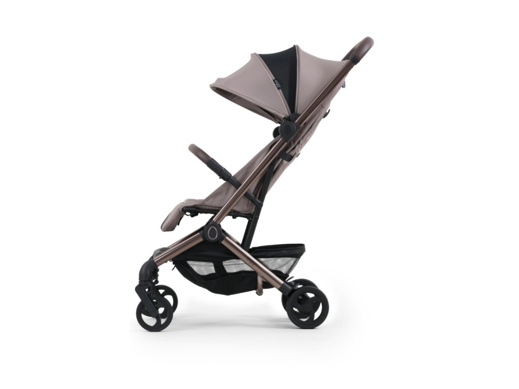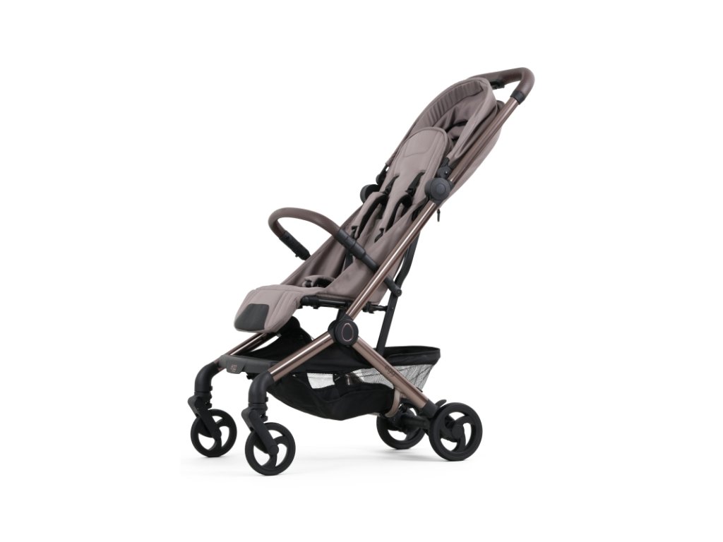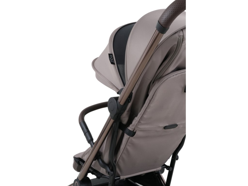 Typické prvky egg® nájdete na každom detaile – od elegantných kriviek a dezénu kolies až po ručne šitú koženkovú rukoväť (s výškou 105 cm) a odnímateľné madlo pred dieťaťom. Každý detail bol starostlivo premyslený pre potreby moderných rodičov, ktorí ocenia spojenie designu a funkčnosti.