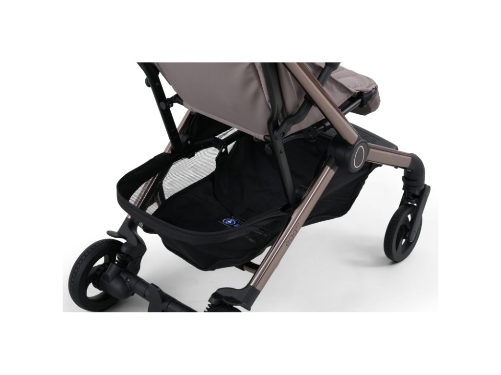 Rozťahovateľná strieška poskytuje ochranu pred slnkom UPF 50+ a obsahuje vetrací panel. Praktické zadné úložné vrecko a veľký košík s kapacitou 3 kg ponúkajú dostatok priestoru na všetko potrebné na cestách.