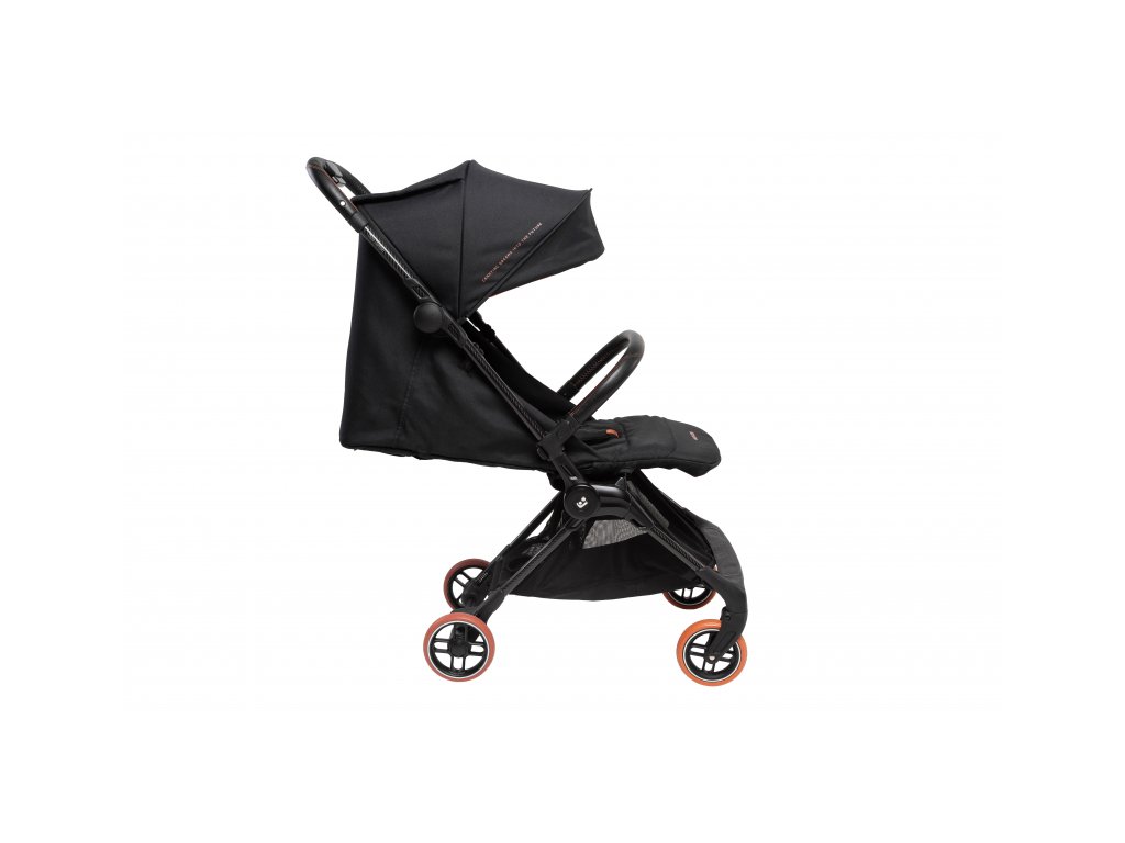 - Kočík sa skladá do ultrakompaktného tvaru veľkosti palubnej batožiny a po zložení samostatne stojí.