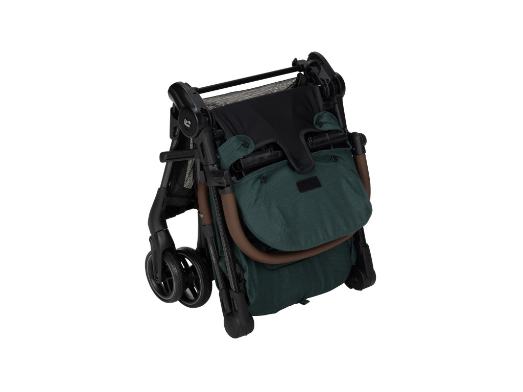 - Kočík sa skladá do ultrakompaktného tvaru veľkosti palubnej batožiny a po zložení samostatne stojí.