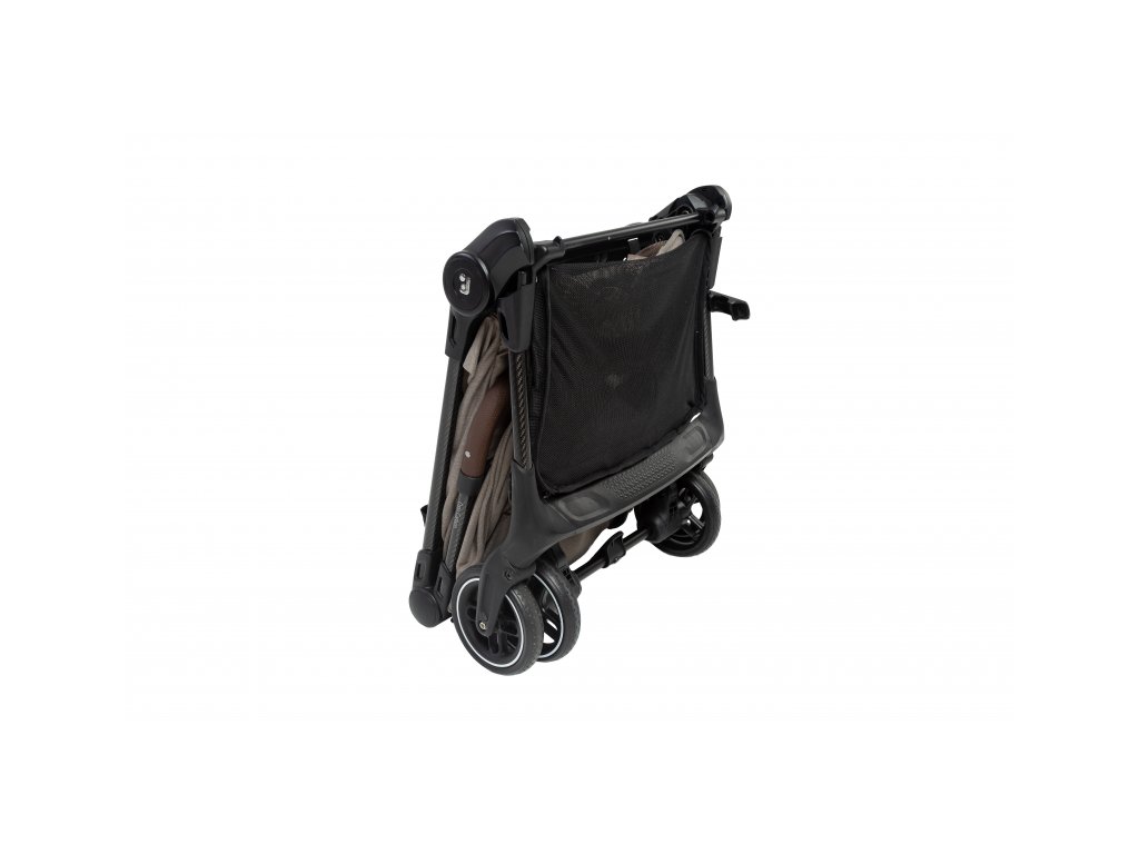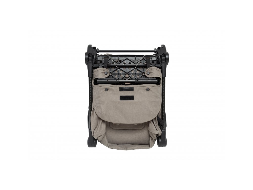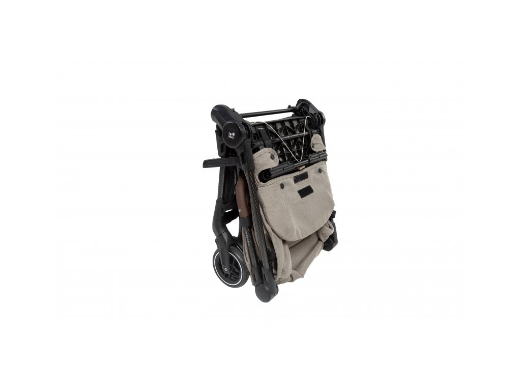 - Kočík sa skladá do ultrakompaktného tvaru veľkosti palubnej batožiny a po zložení samostatne stojí.
