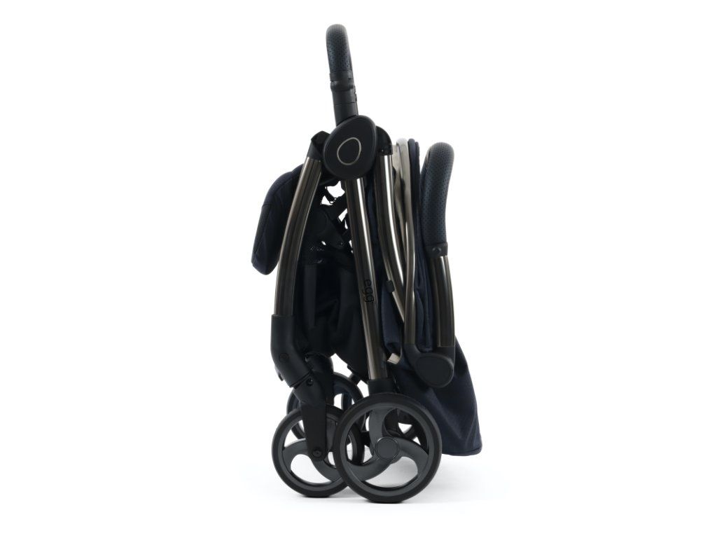 Jedinečný oblý profil podvozku s dômyselným mechanizmom skladania „z-fold“ je srdcom tohto kočíka. Jednoduché skladanie len jednou rukou s diskrétnymi tlačidlami na luxusnej rukoväti má za následok, že je kočík po zložení kompaktný a samostatne stojí. Na rukoväti tiež nájdete 2 praktické háčiky na batoh.