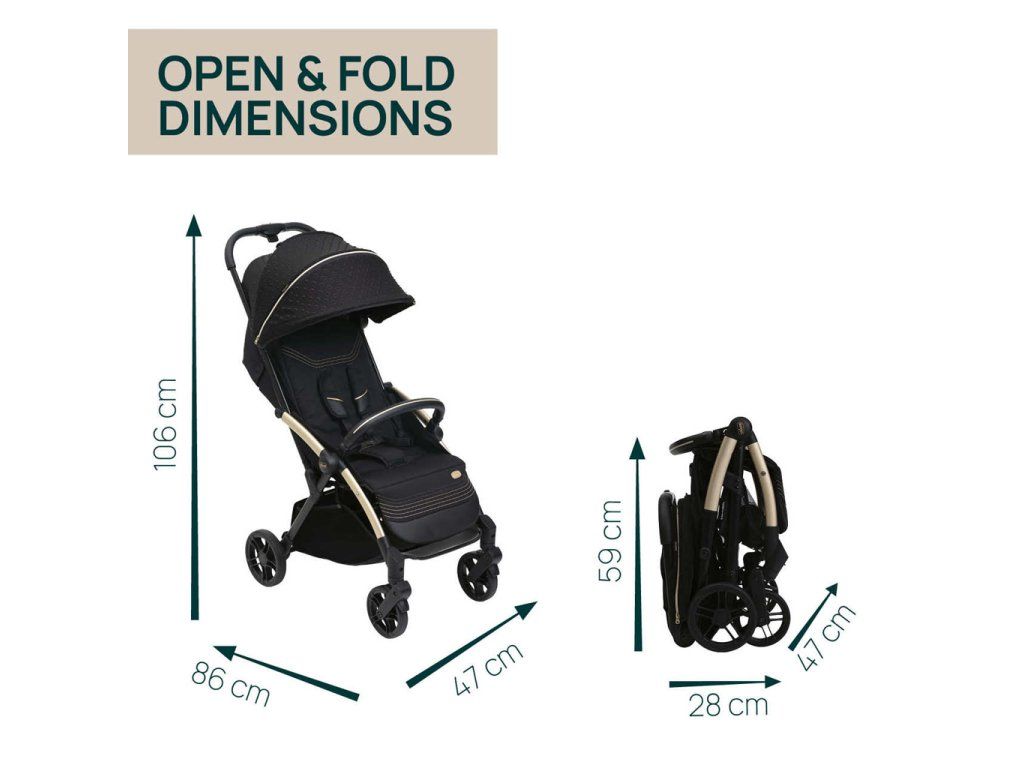 Stačí jeden dotyk a kočík sa sám zloží! Po zložení je skutočne kompaktný a stojí samostatne. Madlo sa dá tiež poskladať pre dosiahnutie väčšej kompaktnosti alebo môže byť použité ako rukoväť na prenášanie.