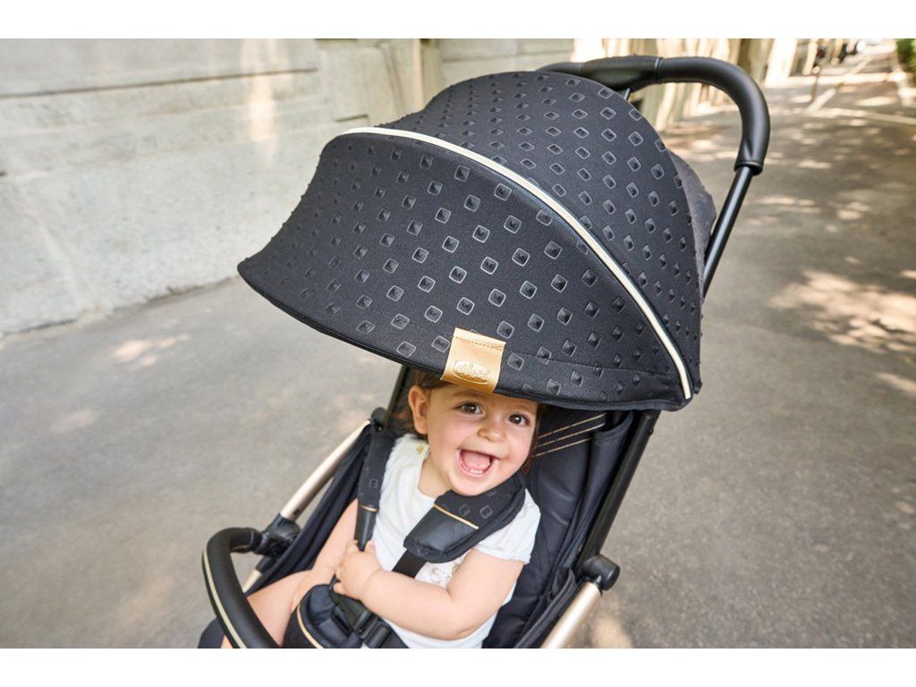 Goody XPlus Black Re_Lux bol vyvinutý tak, aby ponúkal rafinovaný udržateľný produkt s nezabudnuteľným vzhľadom. Módny dizajn charakterizovaný dokonalou kombináciou vzácnej látky s 3D efektom cvokov a zlatých detailov, ktoré dodávajú produktu silný vizuál.Chicco Black Re_Lux je kapsulová štýlová kolekcia, ktorá hovorí, že udržateľnosť vie byť krásna.