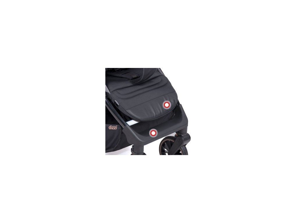- športový detský kočík Dizzi je vybavený ventilačným panelom na zadnej strane kapucne a prídavným okienkom so sieťovinou, ktorá nielen zlepšuje cirkuláciu vzduchu, ale tiež vám umožní mať bábätko stále na očiach