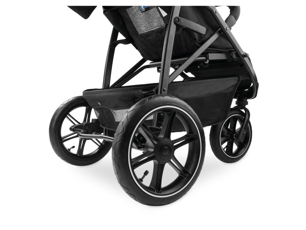 Terénny kočík // Vhodný do mesta aj do lesa - 3 nafukovacie kolesá so zadným odpružením zabezpečujú pohodlnú jazdu aj na nerovnom teréne.
