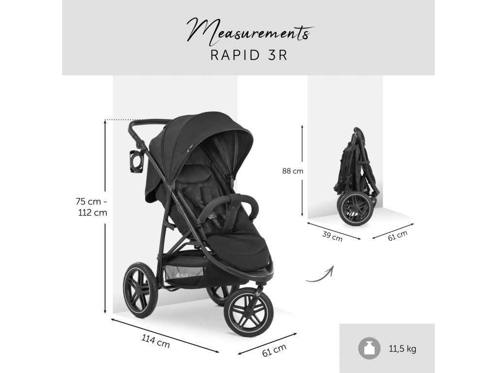 Rapid 3R je vhodný do ca. 4 rokov a do záťaže 25kg. Na prepravu sa rýchlo zloží do kompaktného rozmeru. Odisťovací pútko uľahčí nosenie.