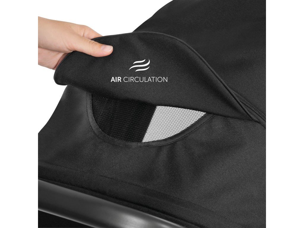 Extra veľká strieška na výletoch mimoriadne ochráni pred slnkom. Je vybavená zorným okienkom a môže byť predĺžená pomocou zipsu. Tým sa odkryje sieťovina, ktorá sa v horúcich letných dňoch postará o dobrú cirkuláciu vzduchu.