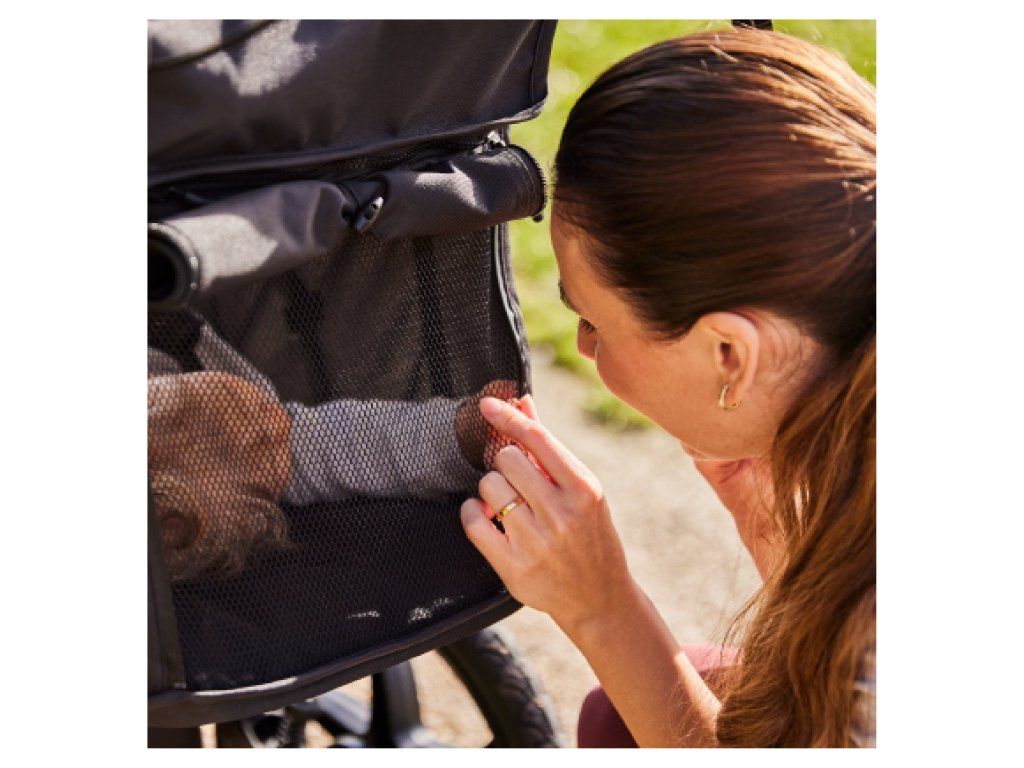 PERFEKTNÁ VENTILÁCIA // Počas teplých dní... veľké vetracie okienko zabezpečuje dostatočnú cirkuláciu vzduchu a v strieške sú dve ďalšie vetracie sieťky. Tkanina použitá na kočíku je veľmi priedušná pre dokonalú a pohodlnú jazdu.