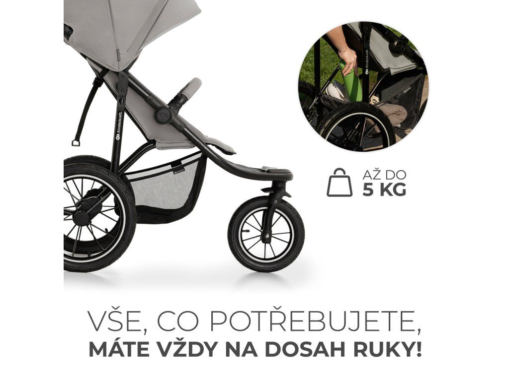 Pri každej prechádzke je dobré vziať so sebou ďalšie pomôcky, ako sú vlhčené obrúsky, cumlík, hračka alebo niečo na pitie či jedenie. Nie je potrebné nosiť objemný batoh: všetky potrebné veci môžete uložiť do košíka, ktorý má nosnosť až 5 kg.