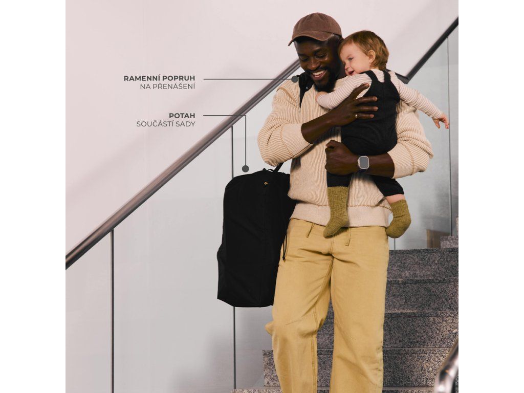 Kočík je vybavený ochranným krytom, ktorý ho chráni pred nečistotami a poškodením pri preprave. Ramenný popruh je natrvalo pripevnený ku kočíku a dá sa zospodu upevniť, keď sa nepoužíva, aby neprekážal pri prechádzke.