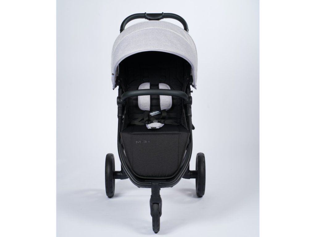 Ľahký rám je vyrobený z hliníka a vďaka odpruženiu všetkých kolies kočík M.3x zaisťuje optimálnu jazdu pre dieťa aj rodiča. M.3x spĺňa normu EN 1888-2.