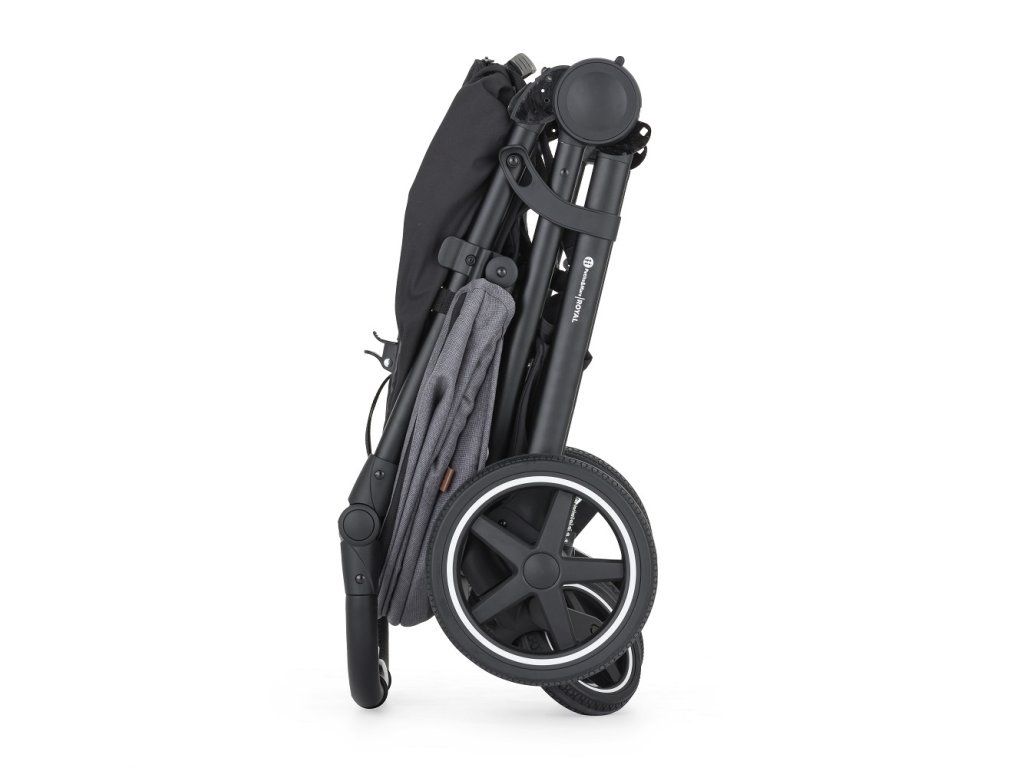 - Konštrukciu kočíka v čiernej farbe s madlom a rukoväťou v čiernej eko-koži