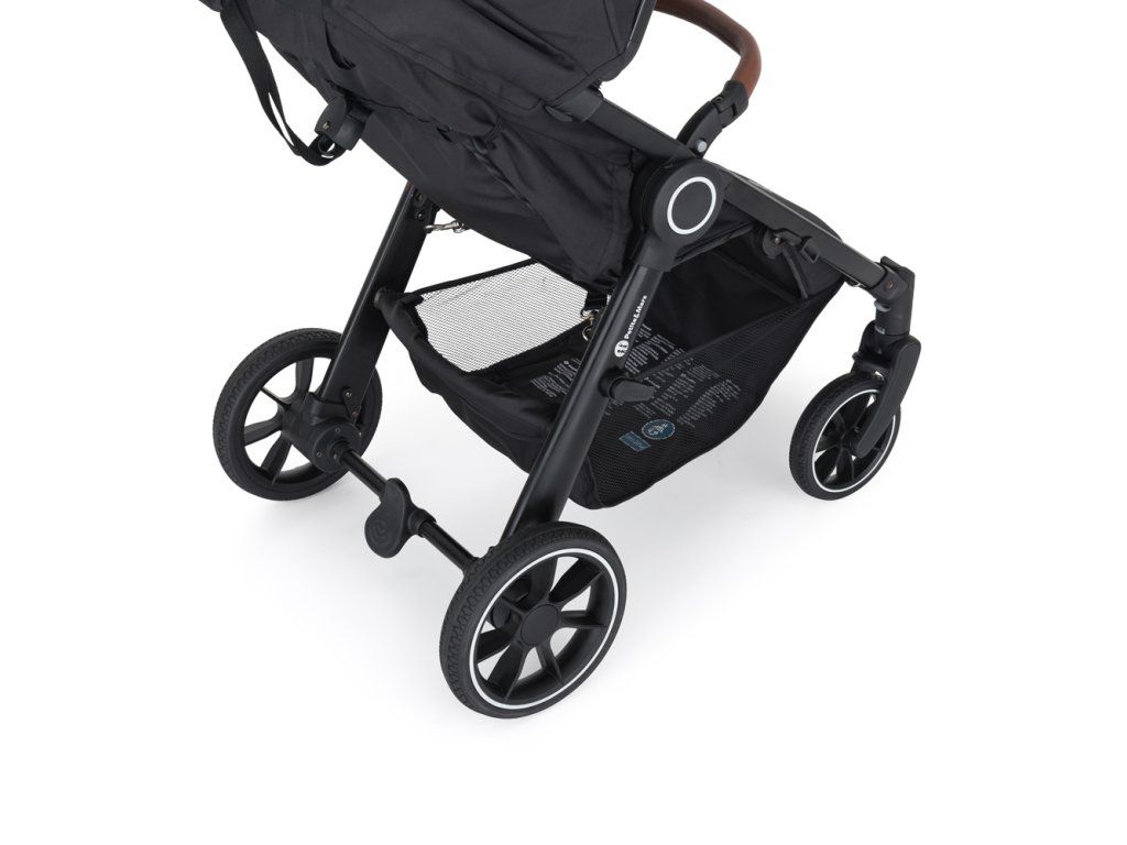 - Kvalitný úchyt kolies, ktorý zaisťuje stabilitu kočíka počas jazdy.