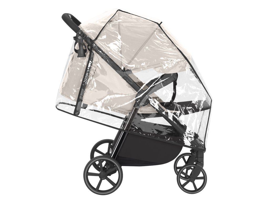 - Hlboká strieška a zateplený kryt nôh chránia pred nepriaznivým počasím. Tkanina je odolná voči vode a má UV ochranu SPF 50.