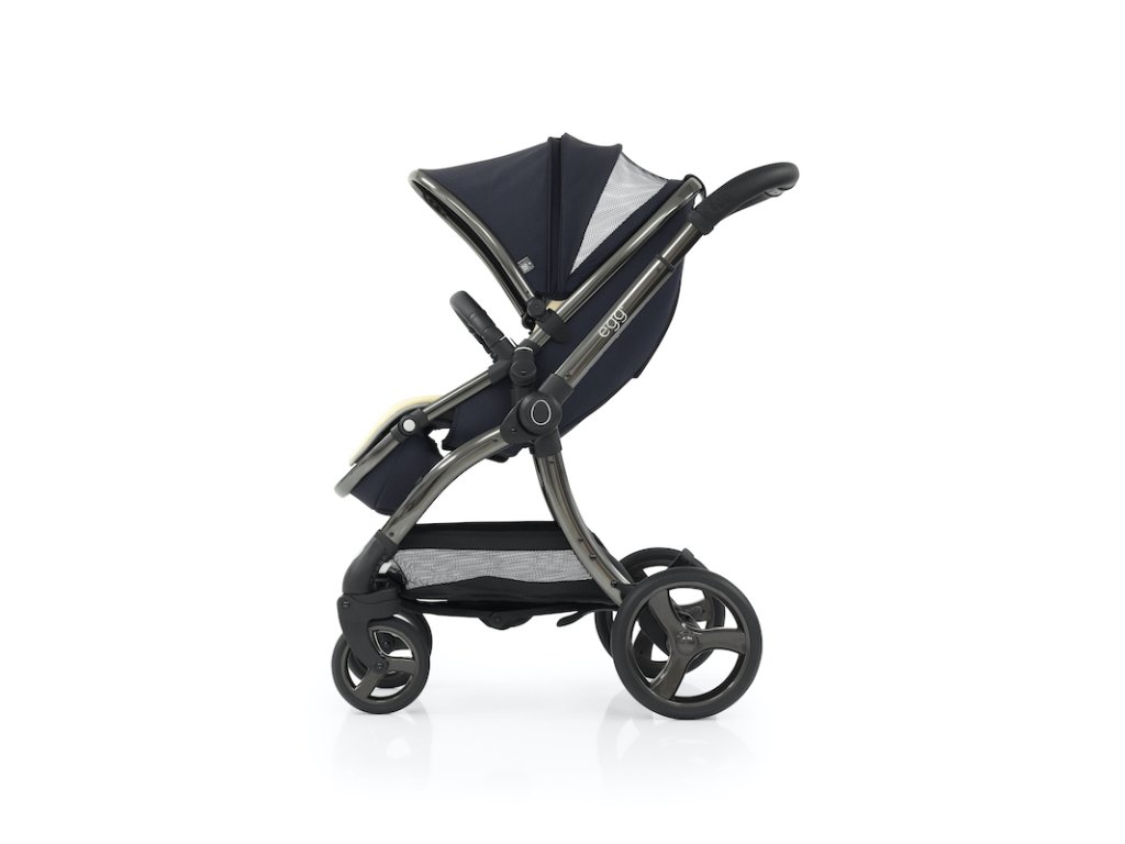 - nová priestrannejšia sedacia časť kočíka egg²® je o 7 cm vyššia (celková výška chrbtovej opierky je teraz 59 cm) a na podvozku je posadená o 3,6 cm vyššie. Možno ju sklopiť do 3 polôh a klasicky ponúka 2 možnosti umiestnenia na podvozku - smerom k rodičovi alebo čelom do okolia;
