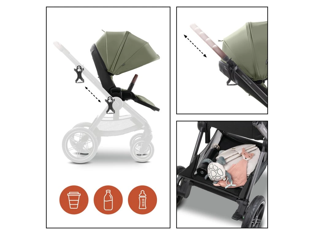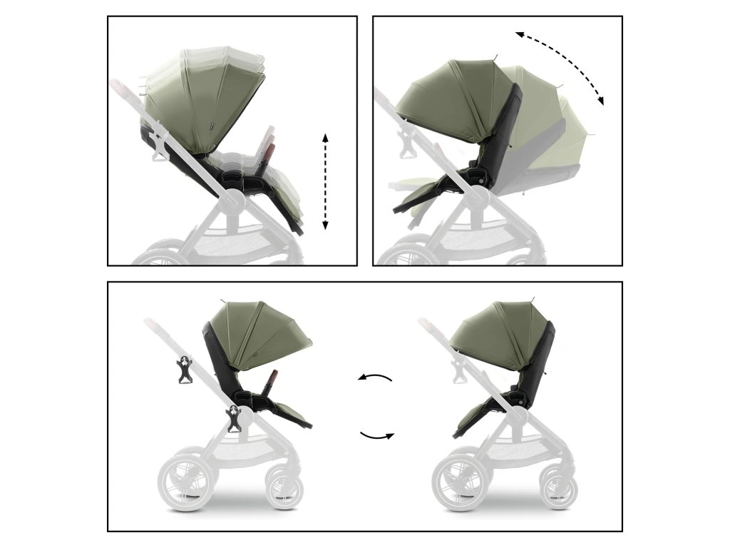 POHODLNÉ SEDADLO S DVOMA VÝHLADMI // Či už idete na zmrzlinu, kávu alebo do parku, kočík sa vďaka výškovo nastaviteľnému otočnému sedadlu perfektne prispôsobí vašim potrebám. Navyše, vďaka extra dlhému sedadlu a polohovaniu poskytuje maximálny komfort v každej situácii.