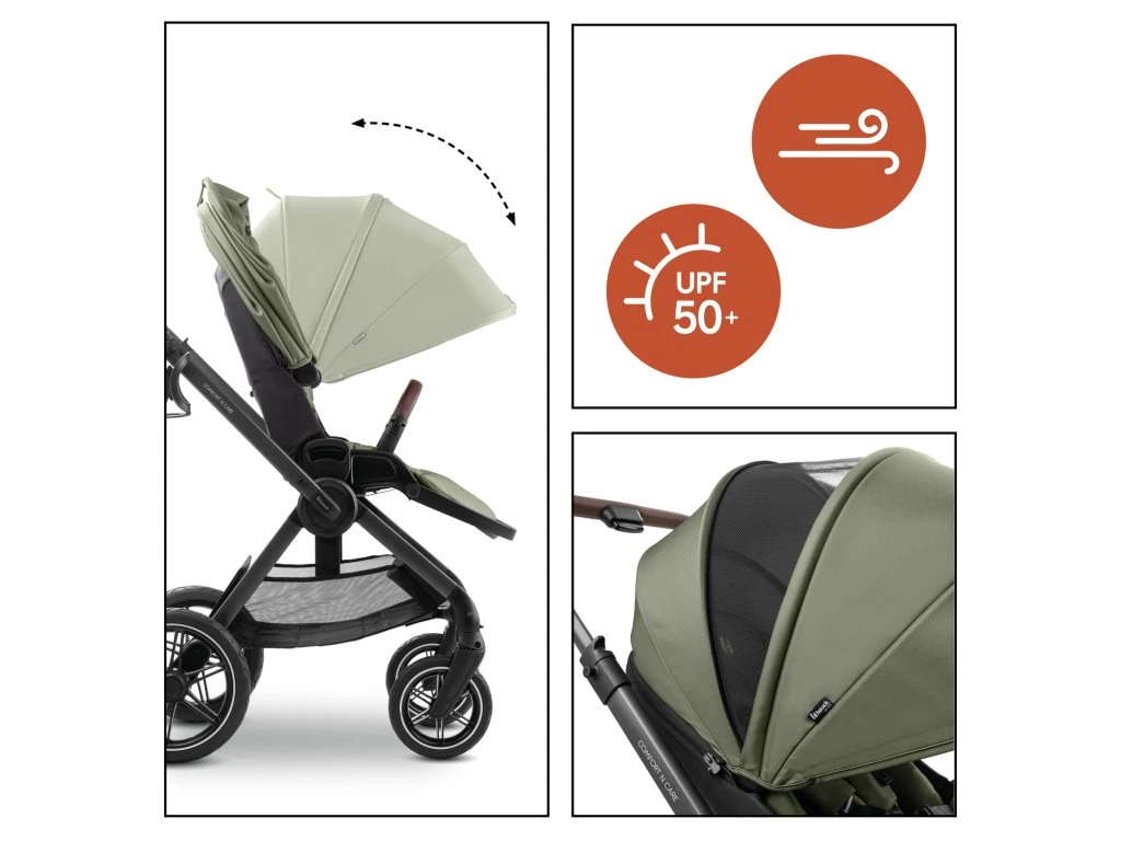 XL STRIEŠKA PRE MAXIMÁLNU OCHRANU PRED SLNEČNÝM ŽIARENÍM // Sedadlo aj hlboká vanička sú vybavené rozťahovateľnou strieškou s ochranou UV 50+ a veľkými sieťovanými okienkami. Vďaka tomu je vaše dieťa optimálne chránené a zároveň si môže užívať čerstvý vzduch.