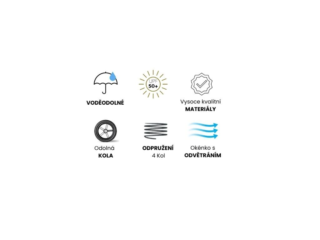 - hmotnosť kočíka so sedacou časťou: 9,2 kg