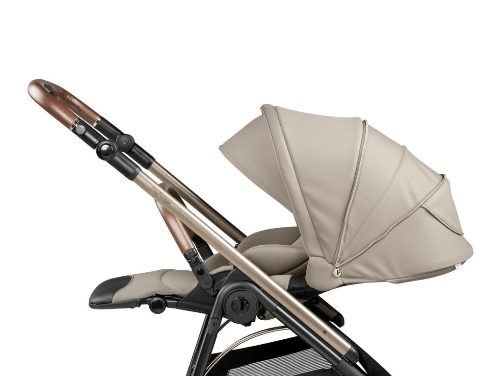 Výškovo nastaviteľná rukoväť v eco koži zaisťuje to najpohodlnejšie a najprívetivejšie ovládanie kočíka, a to aj len jednou rukou. Keďže aj na obyčajnú prechádzku je potrebné vziať si so sebou veľa nevyhnutností, ľahko prístupný a priestranný košík kočíka Veloce je vybavený vystuženým dnom pre ťažší náklad (až 7 kg). Aj na košíku sa nachádzajú reflexné prvky pre vyššiu bezpečnosť počas zníženej viditeľnosti. Či už vaše dieťa v kočíku práve odpočíva alebo objavuje okolitý svet, predlžovacia XXL strieška s UPF 50+ ho ochráni pred slnkom a vetrom. Nemenej užitočný je aj na mieru šitý nánožník, ktorý poskytuje ochranu dieťaťa aj v prípade sklopenej opierky chrbta.
