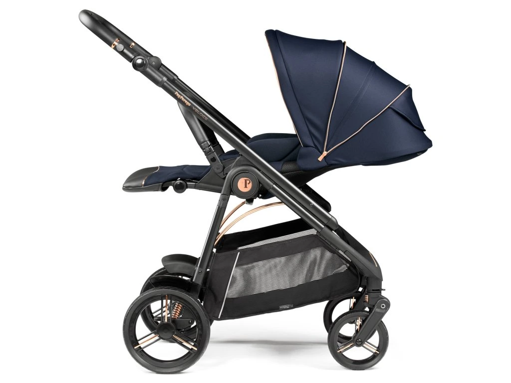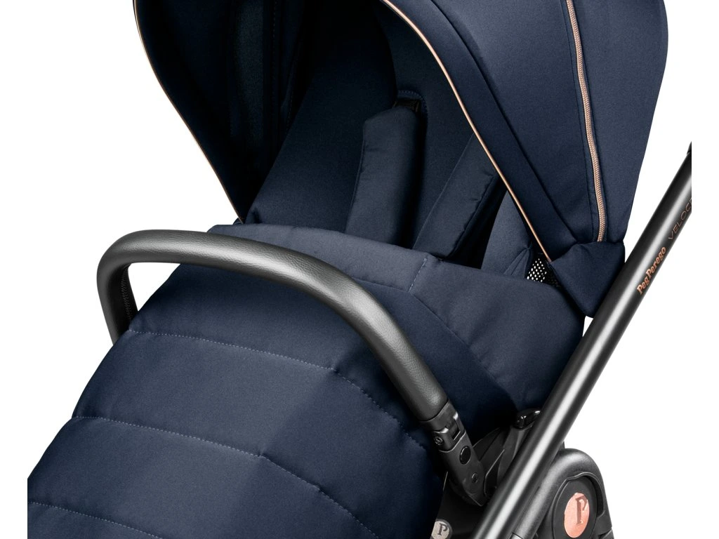 Výškovo nastaviteľná rukoväť v eco koži zaisťuje to najpohodlnejšie a najprívetivejšie ovládanie kočíka, a to aj len jednou rukou. Keďže aj na obyčajnú prechádzku je potrebné vziať si so sebou veľa nevyhnutností, ľahko prístupný a priestranný košík kočíka Veloce je vybavený vystuženým dnom pre ťažší náklad (až 7 kg). Aj na košíku sa nachádzajú reflexné prvky pre vyššiu bezpečnosť počas zníženej viditeľnosti. Či už vaše dieťa v kočíku práve odpočíva alebo objavuje okolitý svet, predlžovacia XXL strieška s UPF 50+ ho ochráni pred slnkom a vetrom. Nemenej užitočný je aj na mieru šitý nánožník, ktorý poskytuje ochranu dieťaťa aj v prípade sklopenej opierky chrbta.