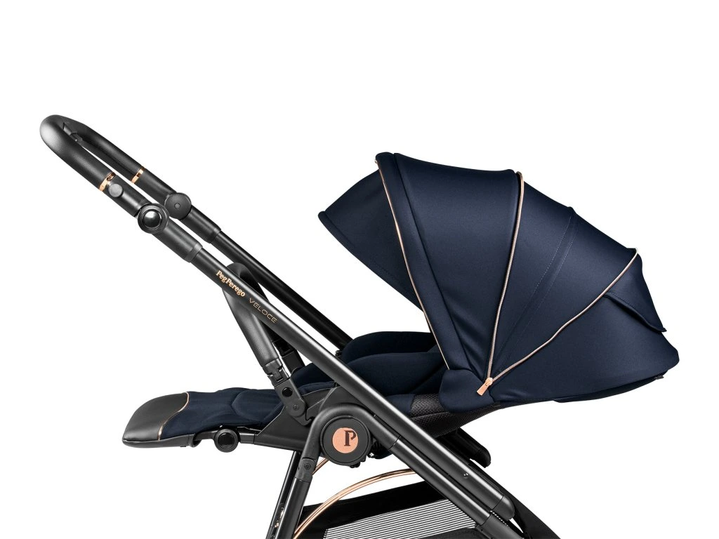 Tento praktický kočík s váhou iba 10,7 kg a šírkou 51 cm si ľahko poradí aj s tými najužšími priechodmi a výťahmi, je ideálny pre každodenné prechody a výťahy. Jeho otočná 4 - sezónna športová nadstavba je vhodná od narodenia až do 22 kg váhy dieťaťa. Športovú nadstavbu je možné v lete ľahko premeniť na priedušnú sieťovanú sedačku. Nastaviteľná opierka chrbta umožňuje prispôsobenie pozície dieťaťa podľa jeho požiadaviek. Bezpečnosť dieťaťa je zaistená 5bodovým magnetickým rýchloupínacím systémom pásov a odnímateľným predným madlom v eco koži. Kočík je možné ľahko skladať spoločne so športovou nadstavbou v oboch pozíciách a to vždy spôsobom, ktorý chráni poťahové časti. Vďaka dômyselnému systému sa kočík skladá iba jednou rukou bez nutnosti sa zbytočne zohýbať. V zloženom stave stojí kočík Veloce samostatne a pýši sa kompaktnými rozmermi (výška iba 76cm), ktoré uľahčujú skladovanie kočíka doma či na návšteve. Vysoko kvalitné Soft-ride kolesá, tlmiče s viditeľnými pružinami a guličkové ložiská na všetkých kolesách zaisťujú jednoduché ovládanie kočíka v každom teréne. Predné otočné kolesá je možné kedykoľvek zaaretovať.