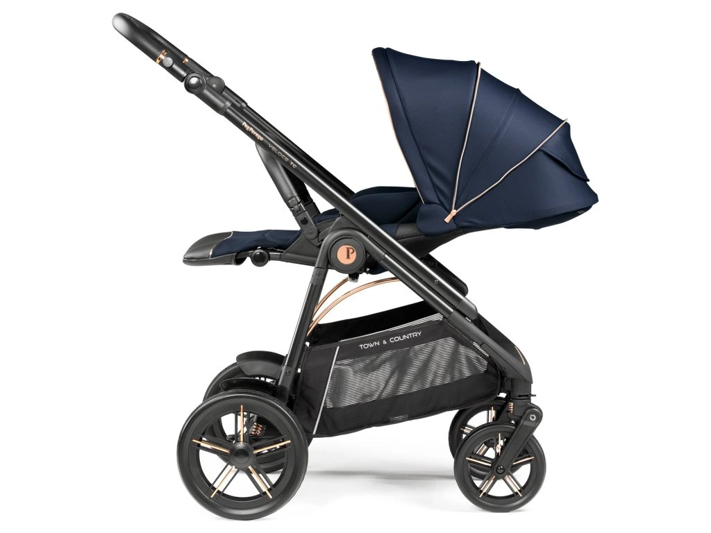 Exkluzívny model talianskej značky Peg Perego. Systém Town Country umožňuje zvoliť najvhodnejší jazdný režim pre váš kočík v závislosti od terénu. Veľké gumové kolesá a guličkové ložiská zaisťujú ľahkú a extrémne hladkú jazdu. Či už vaše dieťa v kočíku práve odpočíva alebo objavuje okolitý svet, predlžovacia XXL strieška s UPF 50+ ho ochráni pred slnkom a vetrom. Nemenej užitočný je aj na mieru šitý nánožník, ktorý poskytuje ochranu dieťaťa aj v prípade sklopenej opierky chrbta.