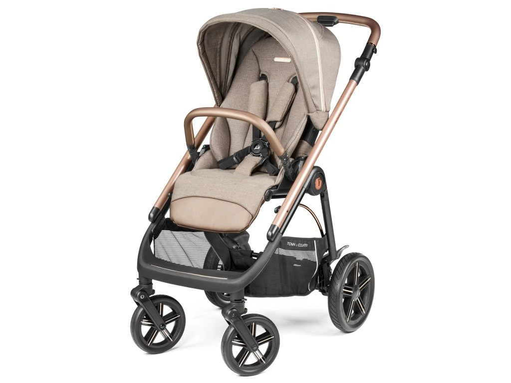 Exkluzívny model talianskej značky Peg Perego. Systém Town Country umožňuje zvoliť najvhodnejší jazdný režim pre váš kočík v závislosti od terénu. Veľké gumové kolesá a guličkové ložiská zaisťujú ľahkú a extrémne hladkú jazdu.