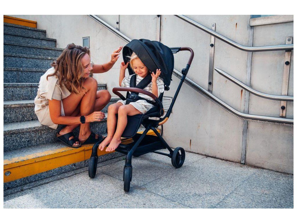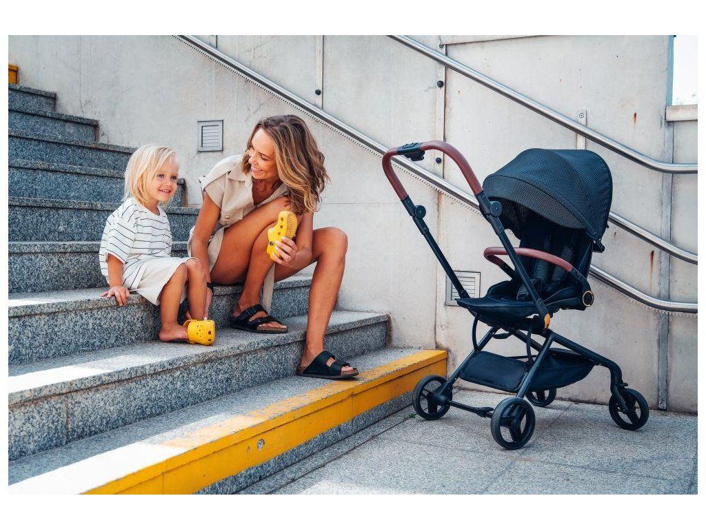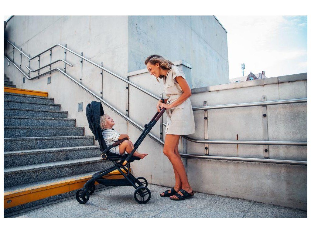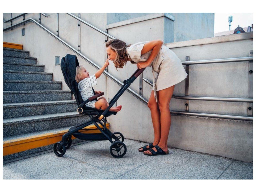 - Kočík MoMi ADELLE je možné zložiť jednoduchým pohybom ruky, po zložení je kočík kompaktný a zmestí sa prakticky kamkoľvek.