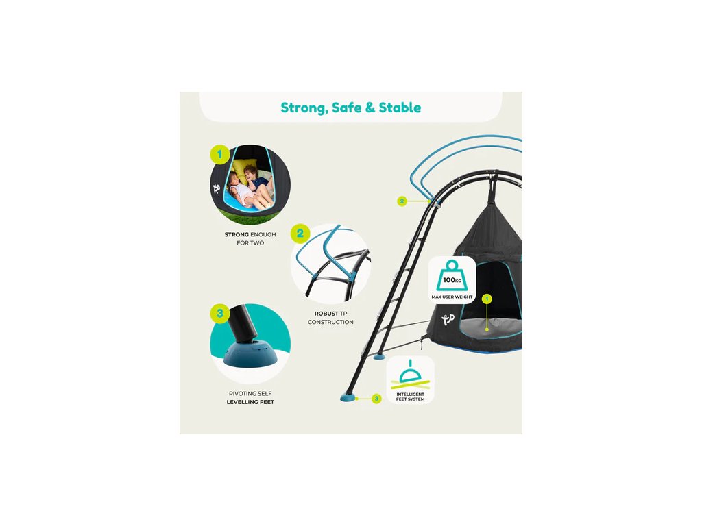 Popustite uzdu svojej fantázii! UFO stan & preliezka je dokonalá hracia zóna pre vaše ratolesti na vytváranie vlastných dobrodružstiev!Deti sa môžu hojdať alebo relaxovať s nohami hore v útulnom stane a vykúkať z okna. Ufo rozvíja kreativitu a fantáziu detí. Podporuje rozvoj hrubej motoriky.