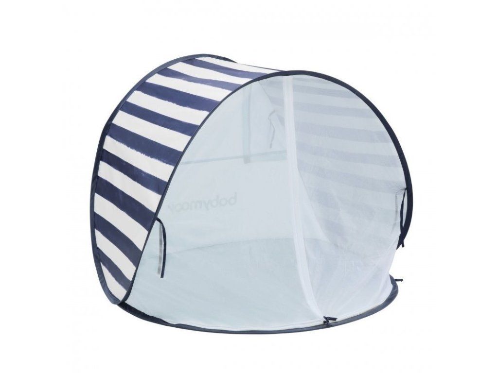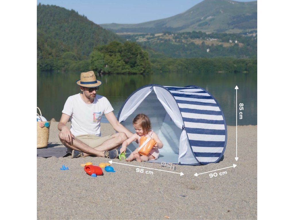 Stan sa ľahko zostavuje a skladá vďaka pop-up systému, je dostatočne veľký aj pre 2 deti. Má veľký otvor vpredu a dve ventilačné okienka vzadu pre optimálnu cirkuláciu vzduchu. Sieťkou v prednej časti možno celý stan uzavrieť, čím vytvoríte ochranu pred hmyzom počas leta. Dno stanu je nepriepustné. Tento plážový stan je dodávaný so 4 kolíky pre upevnenie. Stan je veľmi ľahký (<1 kg) a ľahko sa prenáša v taške s pútkami, ktorá je súčasťou.