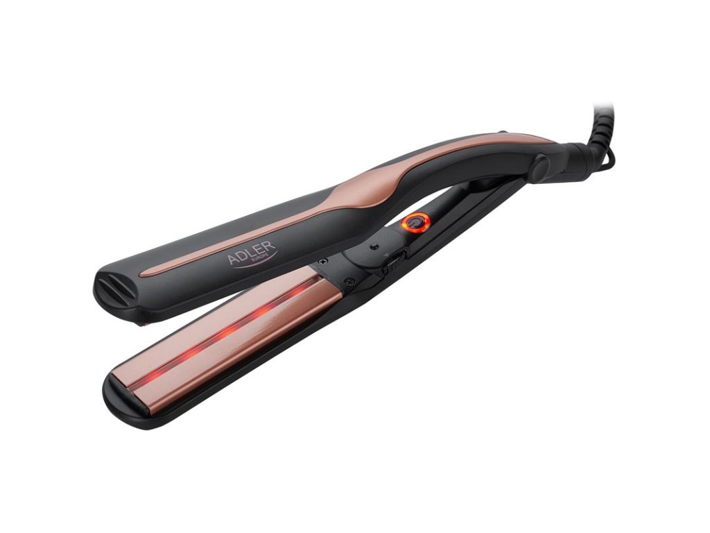 Inovatívna infra žehlička na vlasy Adler AD2318 je vybavená keramickými doskami, ktoré zaisťujú bezpečné vyrovnávanie vlasov. Infračervená technológia zaisťuje rovnomernejšie rozloženie tepla po celom povrchu doštičiek a dodáva vlasom krásny a zdravý vzhľad. Prístroj má reguláciu teploty v rozsahu 150 až 230°C, čo umožňuje optimálne prispôsobenie sa typu vašich vlasov. Žehlička má ergonomický, pohodlný tvar a vyznačuje sa rýchlym zahrievaním. Zaoblené hrany bránia náhodnému popáleniu a vyhrievacie dosky dokonale pritlačia pramene vlasov na obidve strany. Maximálny výkon zariadenia je 120 W.O účes sa radi staráme pri práci, pri zvláštnych príležitostiach, ale aj počas typických dní. Bohužiaľ, použitie fénov, elektrických kefiek, natáčiek a žehličiek je veľmi často nevhodné pre zdravie našich vlasov. Vidíme, že za každého počasia vyschnú, elektrifikujú a objavia sa rozštiepené končeky. Preto, ak sa nechceme vzdať častej starostlivosti a stylingu, mali by sme zvoliť vybavenie, ktoré tiež pomôže zdraviu vlasov. Žehlička Adler AD 2318 používa infračervenú technológiu, ktorá zaisťuje rovnomerné rozloženie tepla a zaisťuje zdravý a krásny vzhľad vlasov.Charakteristika a technické údaje:Infračervená žehlička na vlasyKeramické doštičky pre bezpečné vyrovnávanie vlasovRegulácia teploty: 150-230°CRýchly ohrev (PTC)Infračervená technológia distribuuje teplo rovnomerneInfračervená technológia dodáva vlasom lesk a krásny vzhľadPohodlná rukoväť a ergonomický tvarZaoblené hrany zabraňujú popáleniuPramene vlasov dokonale zapadajú do dosiekVýkon: 35 WMaximálny výkon: 120 WNapájanie: 220-240 V, 50/60 HzAdler Europe Group ponúka kvalitné výrobky, ktoré oceňujú milióny zákazníkov v Európe, za prijateľnú cenu. Značka začala svoju činnosť na poľskom trhu od roku 2002, odkiaľ sa postupne rozšírila do celej Európy. ,,Už 27 rokov sa riadime myšlienkou poskytovať vysoko kvalitné vybavenie čo najväčšiemu počtu zákazníkov. Dôkladným pochopením potrieb domácností sme vytvorili viac ako 800 produktov, ktoré doteraz ocenili v 35 krajinách po celom svete. Zákazníci si vyberajú naše výrobky pre svoje pohodlie, atraktívny vzhľad a dobrý pomer cena / kvalita. Sledujeme meniace sa trendy na trhu, aby sme technicky a vizuálne uspokojili očakávania našich zákazníkov.‘‘Dodatočné parametre