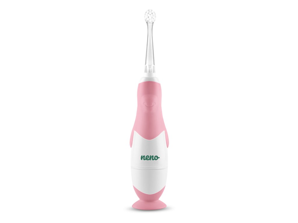 - Keď svojmu dieťatku zrovna nečistíte zúbky, môžete kefku Neno Denti nechať vo vertikálnej polohe. Špeciálna prísavka udrží zubnú kefku na mieste.