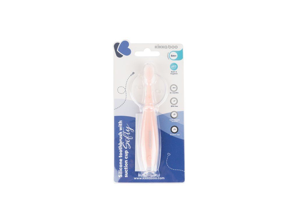 Kefka na zuby pre najmenších z jemného, mäkkého silikónu má protišmykovú rukoväť a kruhovú zábranu na bezpečné čistenie prvých zúbkov dieťaťa. Prísavka umožňuje uchytenie kefky na umývadlo, keď ju nepoužívate.