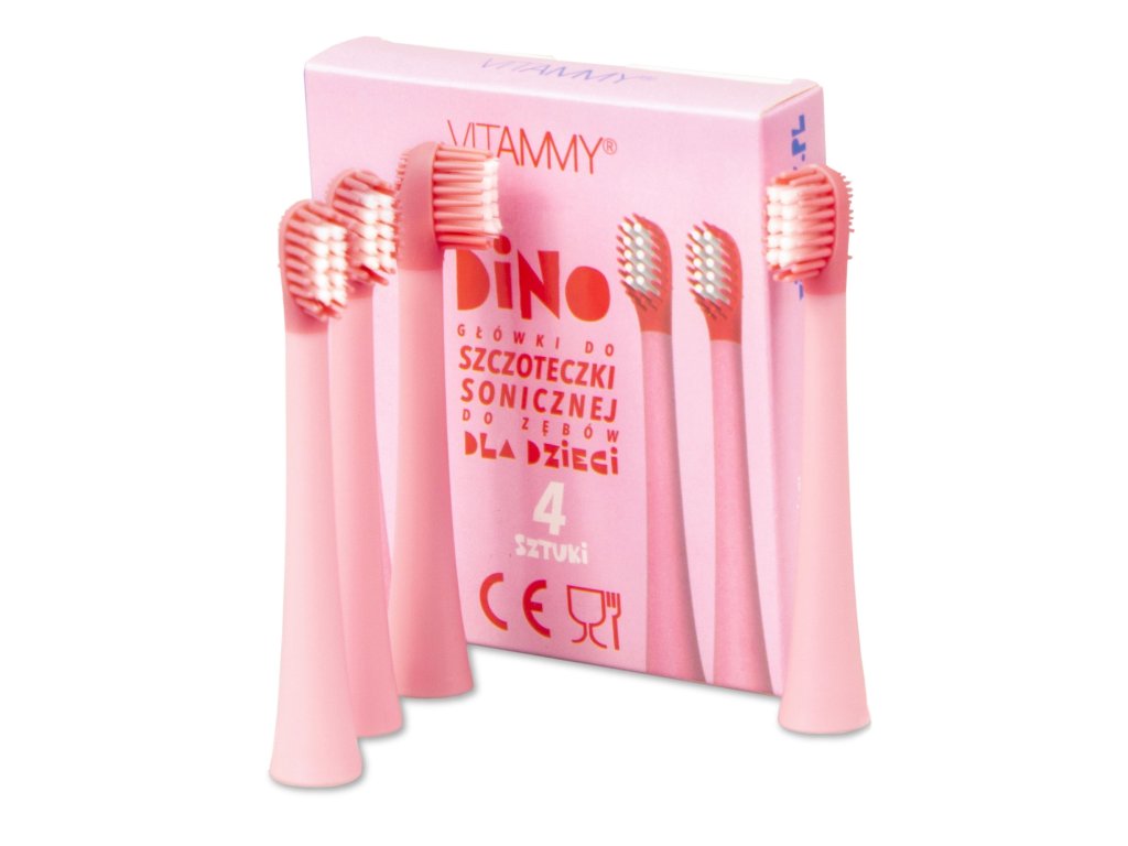 VITAMMY DINO, Náhradné násady na zubné kefky DINO, ružová, 4ks
